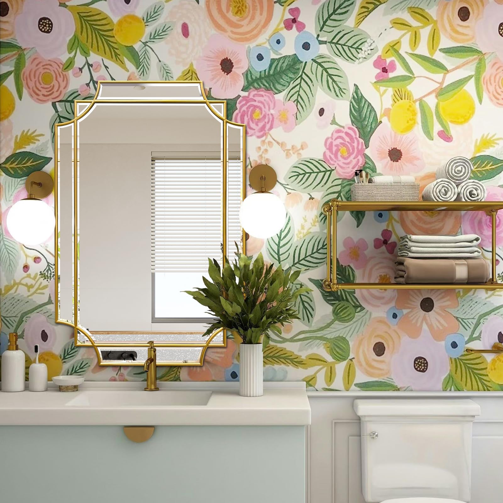 - Gold Foil Design: With a handcrafted gold leaf finish on the gold mirror's border, this mirror is rectangular in shape and complements most home décor, whether you use it as a wall art decoration or a bathroom mirror