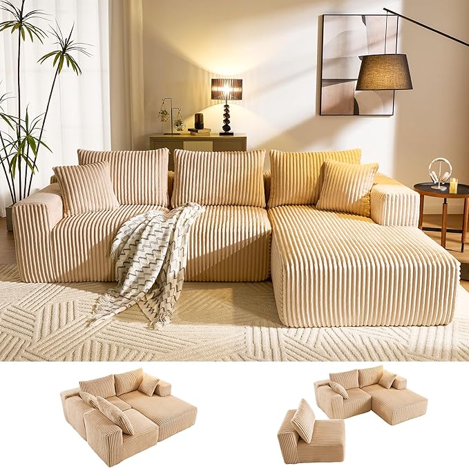 Modular Sectional Sofa with L-Shape Chaise, Cloud Sofa Living Room Bedroom Upholstered