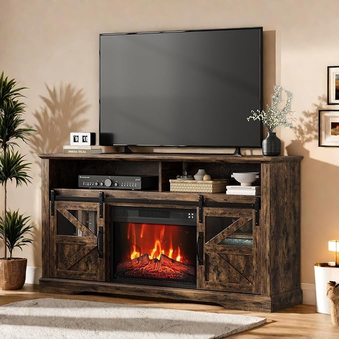 - The 60 inch panel fireplace TV stand made of rugged MDF and particleboard, ensuring strong stability and a 250-pound weight capacity. The farmhouse fireplace TV stand for living room enhances practicality, usage experience and both aesthetics.
