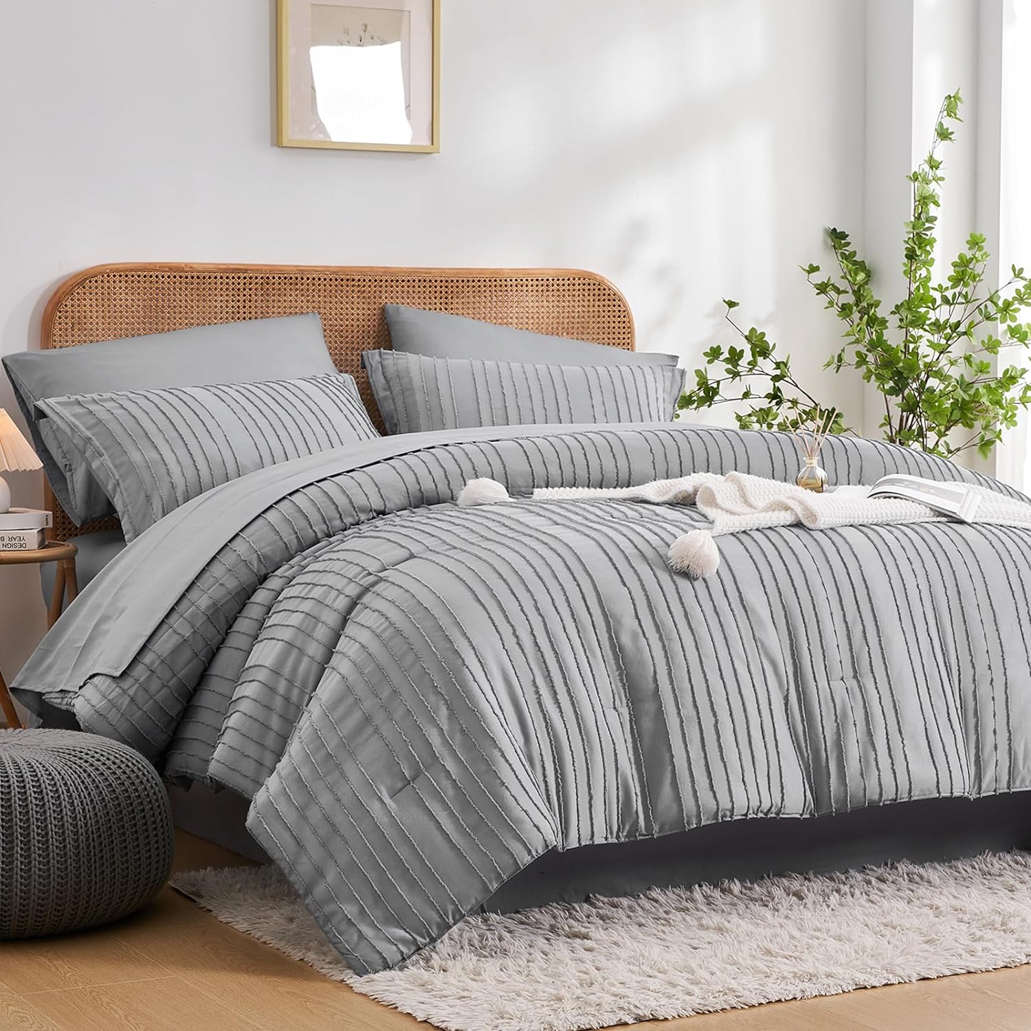 - PREMIUM SOFT FABRIC: The striped tufted queen size comforter set is made of premium microfiber which is ultra soft, lightweight and comfortable. queen bed set can help you sleep comfortably all night.