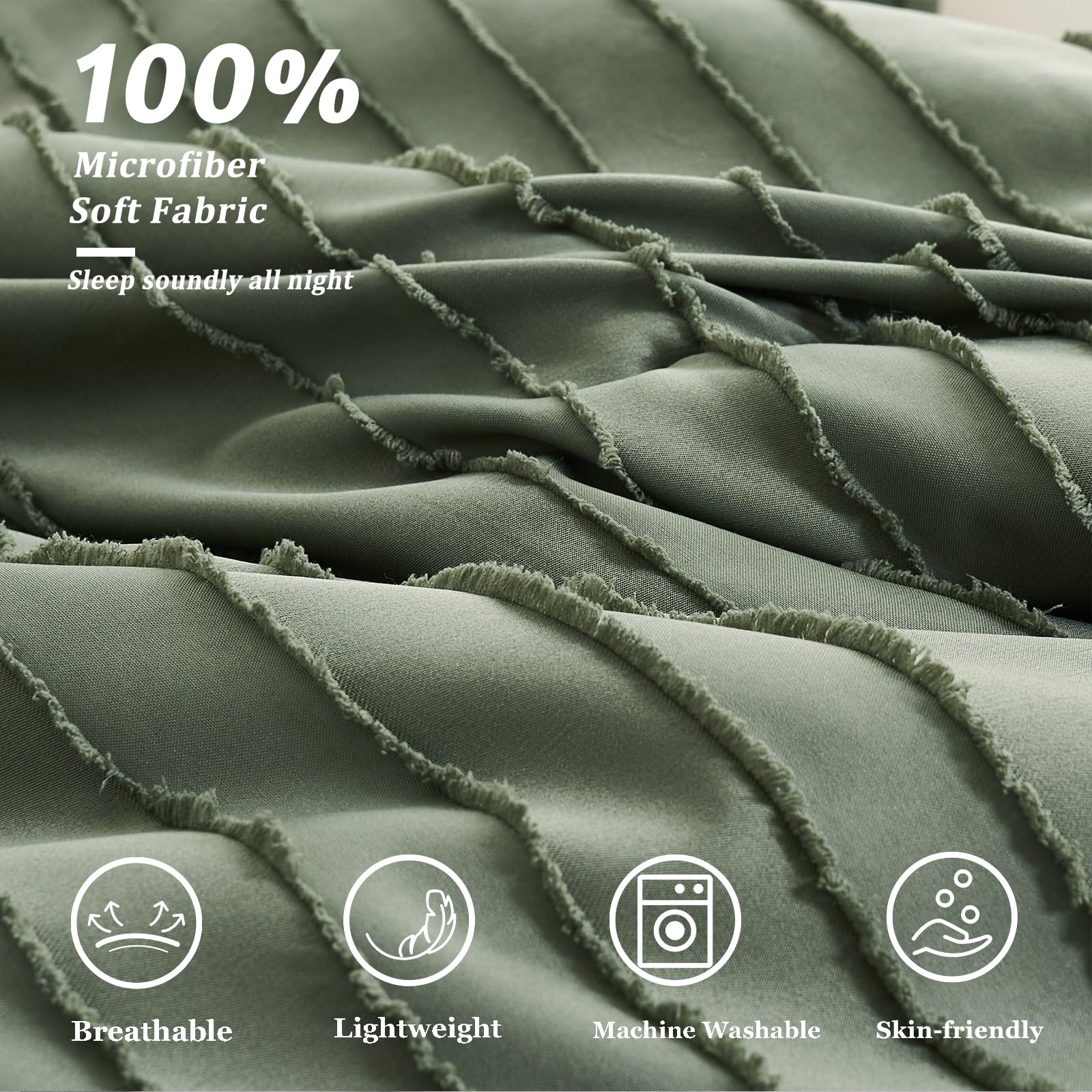 - TUFTED STRIPED TEXTURED DESIGN: The green boho comforter set with tufted striped textured design gives your bedroom a quick refresh. 7 piece bed in a bag comforter set brings an elevated clean and casual vibe to your bedroom.