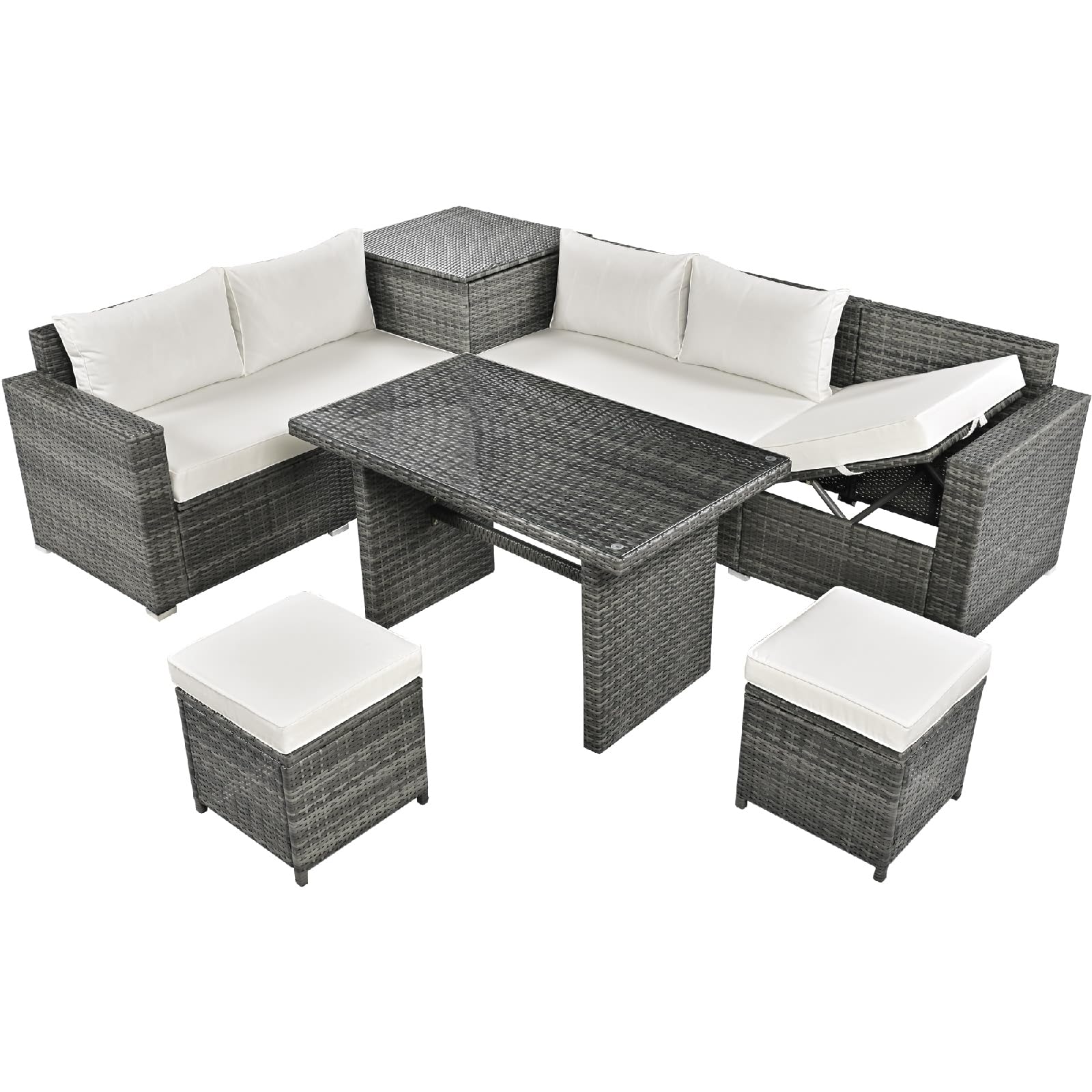Outdoor Sofa Set Rattan Outdoor Conversation Set 6 Piece 6 PCS Rattan Beige 2 Loveseat