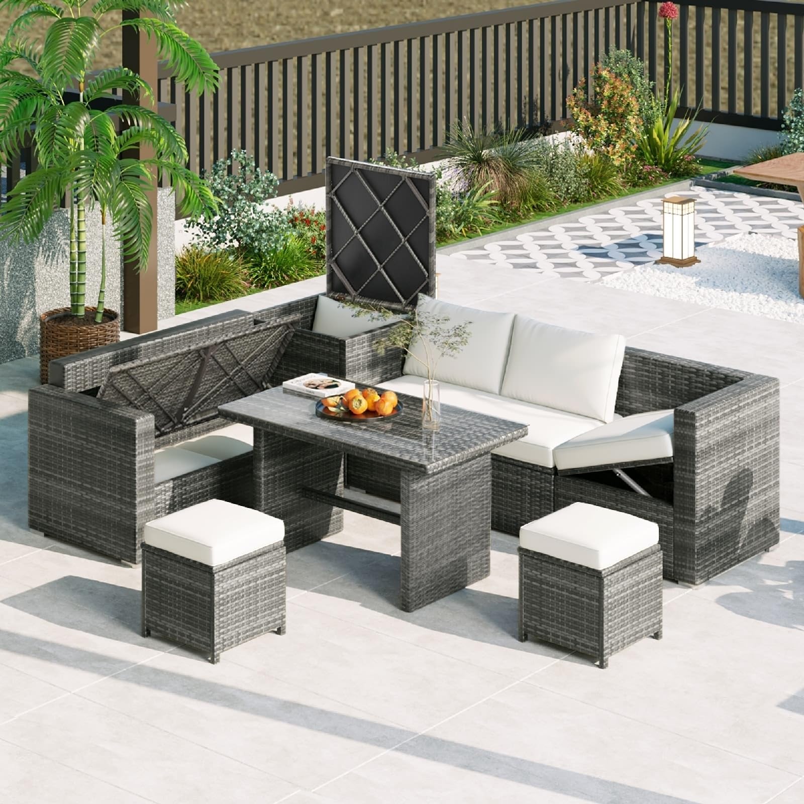 - with adjustable seat storage box removable covers tempered glass top table. Ergonomic design allows you to enjoy ultimate comfort. It's designed to provide you and your family with optimal support for long hours of relaxation in the great outdoors.