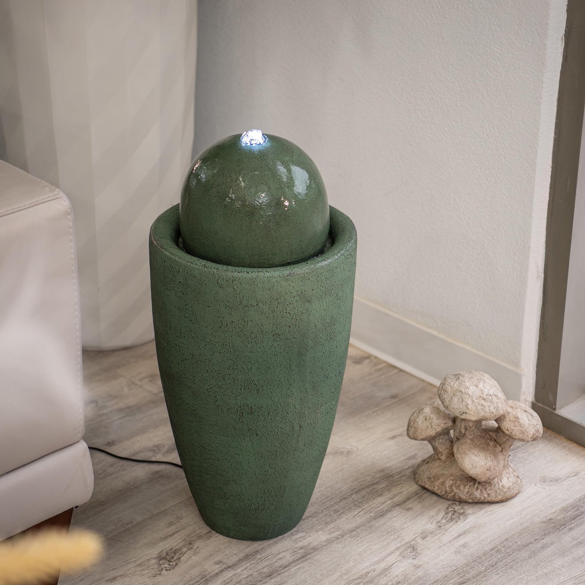 - GREAT SIZED AND LONG-LASTING: This ball water fountain decor measures 25.98"H x 11.81"L x 11.81"W, cord length 5 meters, made of durable Fiber Stone that ensures high quality for years. Also, water capacity of the fountain is 6.4 L.