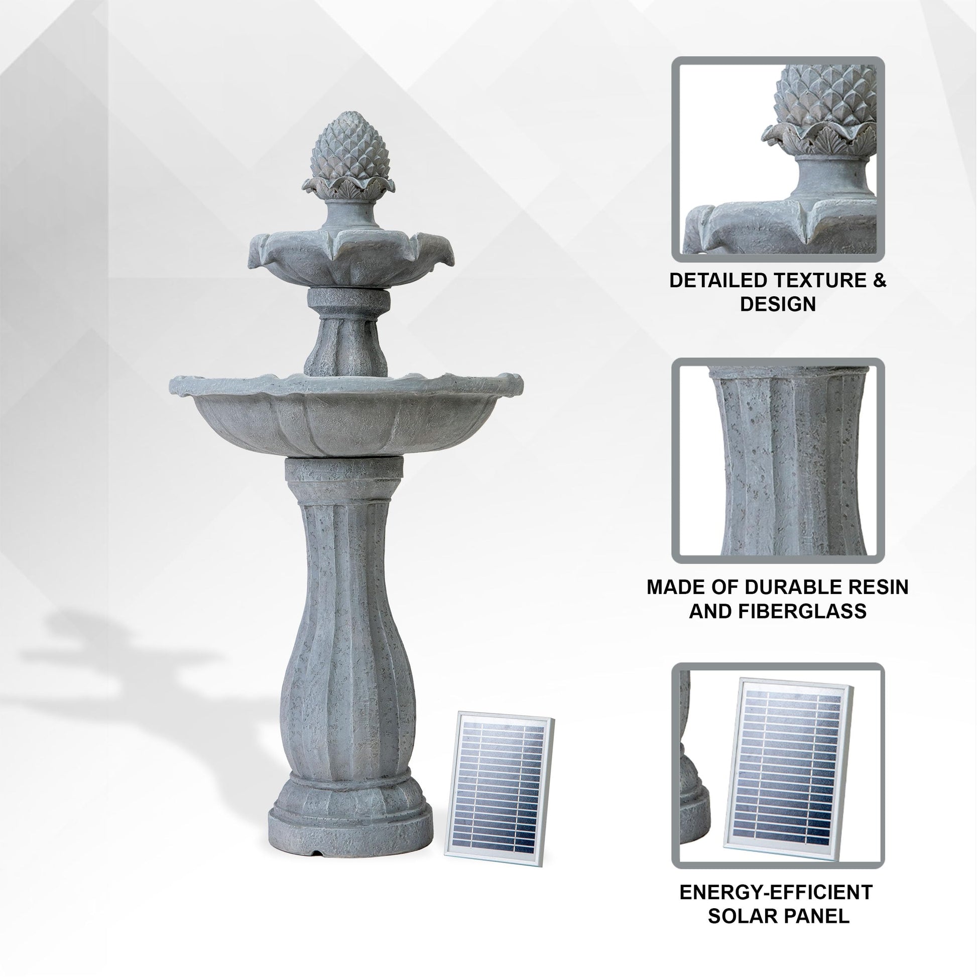XBrand 44" Tall White Fiberglass/Resin 2-Tiered Solar Water Fountain w/Solar Panel and Auto-Shut Off Pump for Home Garden Yard Decor
