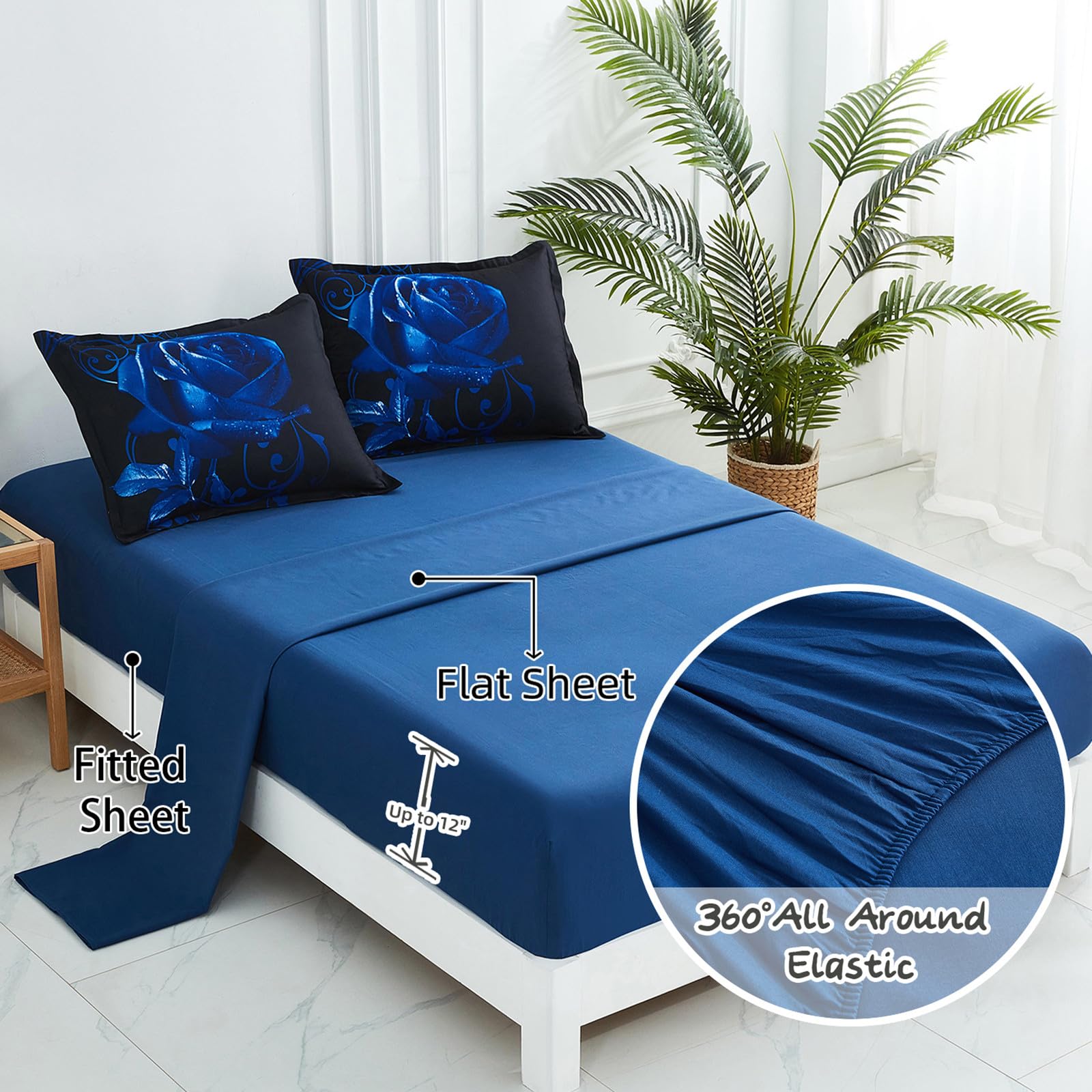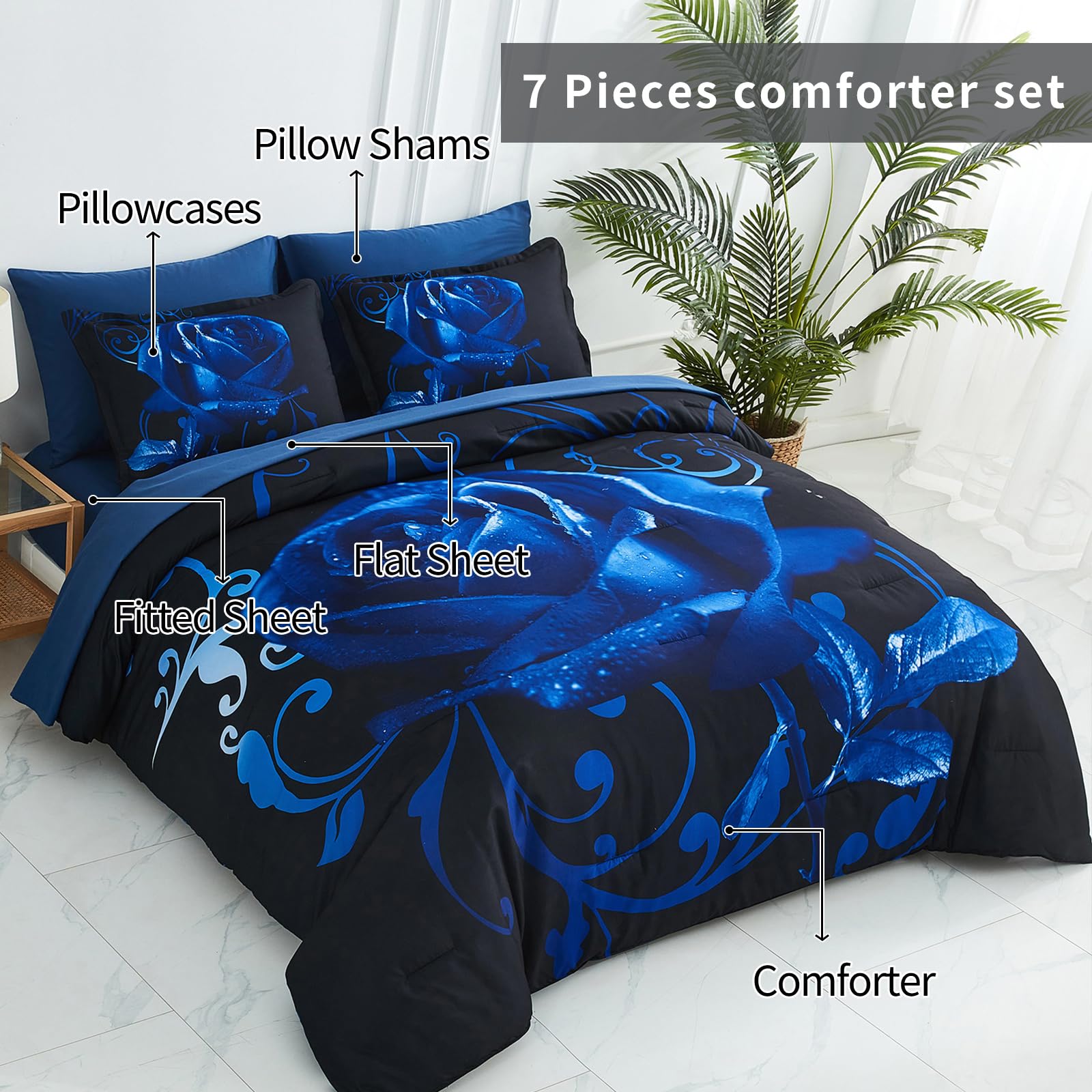 - Premium Microfiber: Premium microfiber fabric with polyester filling, soft, fluffy, comfortable and lightweight. Creating a cozy and comfy sleeping environment and providing cloud-like feelings for you. Cover with the blue rose comforter to enjoy a deep sound sleep all night.