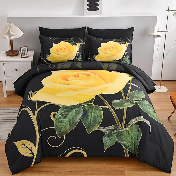 - Comforter Design : Rose pattern printed on the black. The unique botanical design can help you achieve the stylish and fresh style. As a perfect decoration, it is suitable for any room in your house. Good choice as a birthday gift or special holiday gift for teens, boys, girls, men or women.