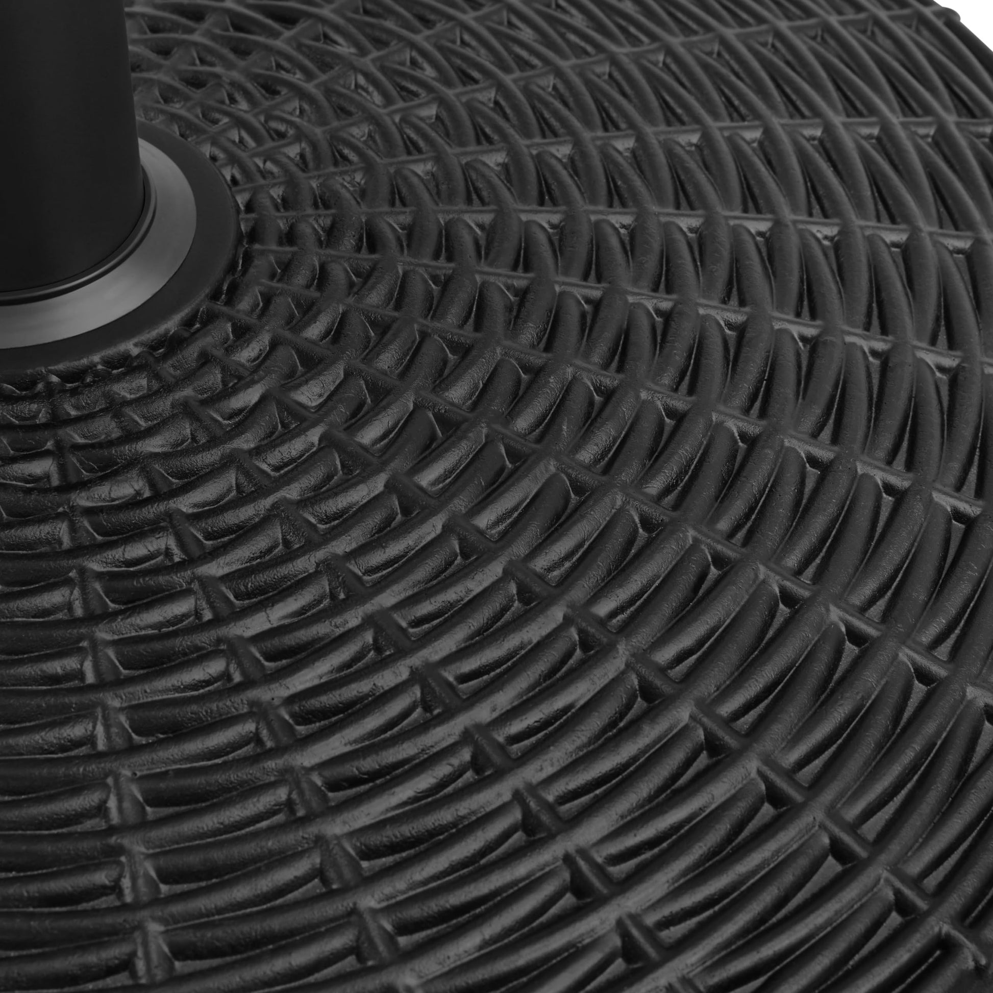 - Painted Iron Surface The surface of the iron part of this patio base stand is coated with a water-resistant covering. This treatment can keep the color as good as new without paint shedding after long usage. Additionally, when moving this base, there is no need to worry about getting color on your clothes