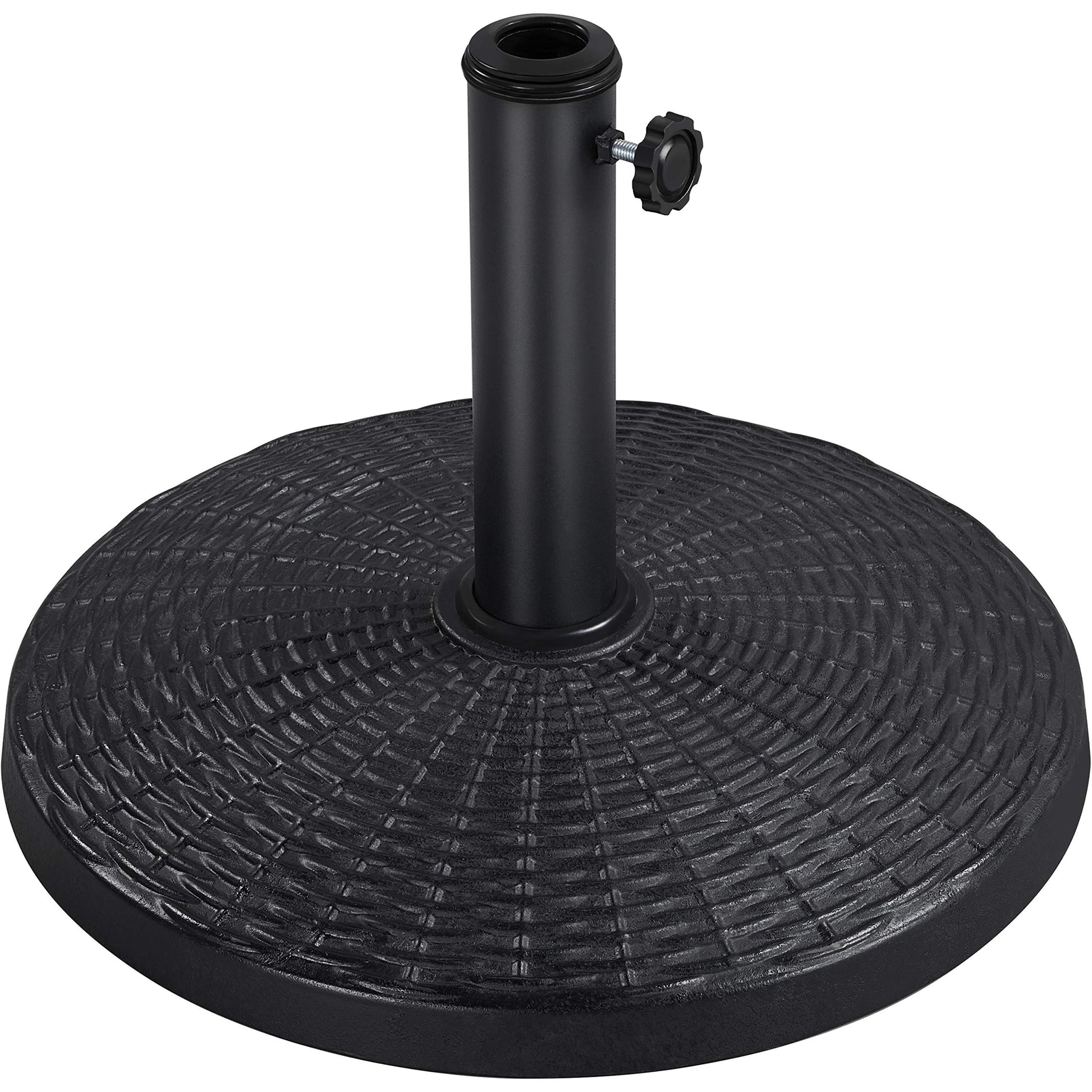 - Heavy duty oriented: This patio market umbrella base stand is made of strong and durable resin and iron, which is really hard and long-wearing. Resin made of outdoor umbrella base stand is durable but lightweight, perfect for outdoor usage.