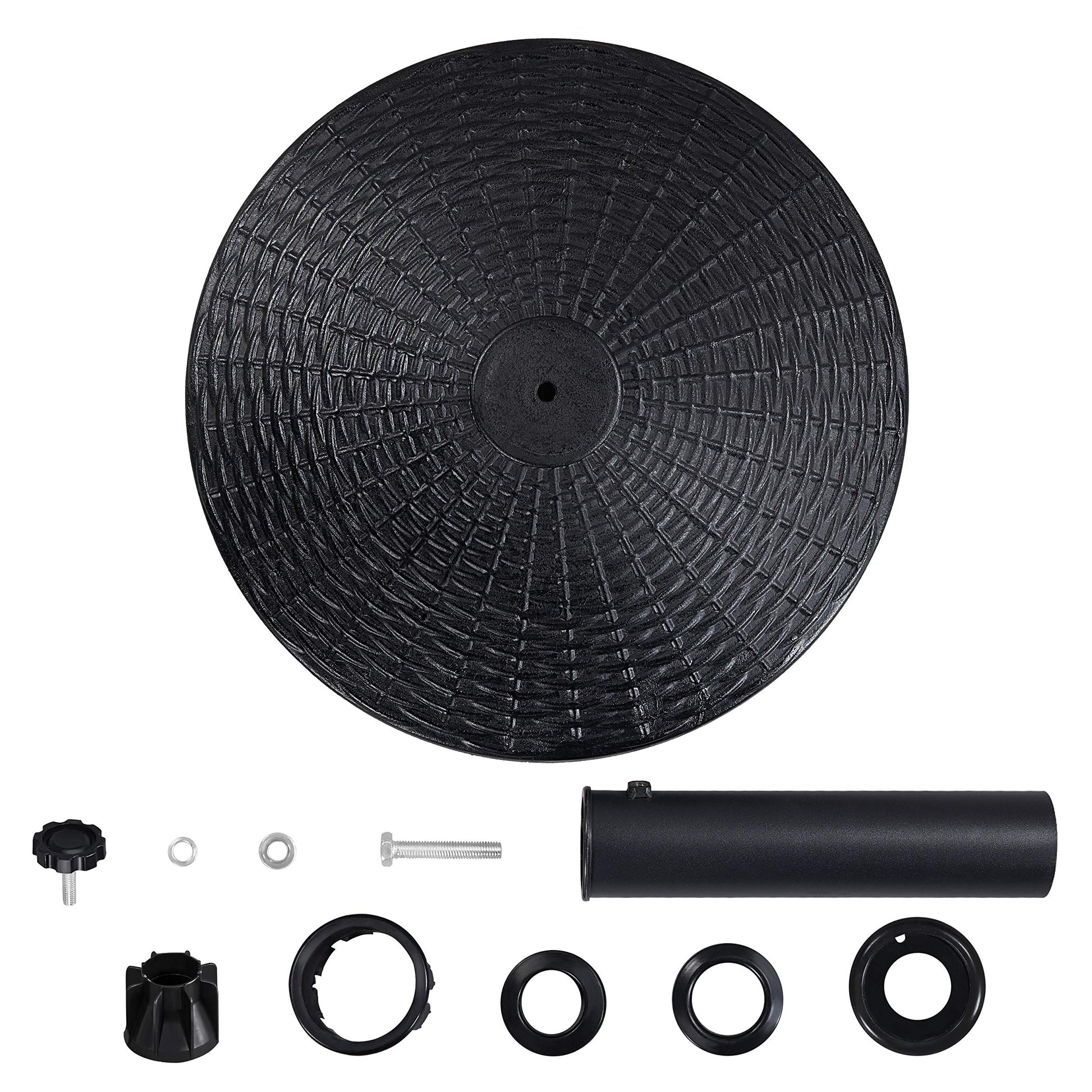- Rotary knob: There is a rotary knob on the side of the center pole to settle the patio umbrella on this base stand, by simply turning the knob left and right, the patio umbrella can be fixed or detached from this outdoor umbrella base stand.