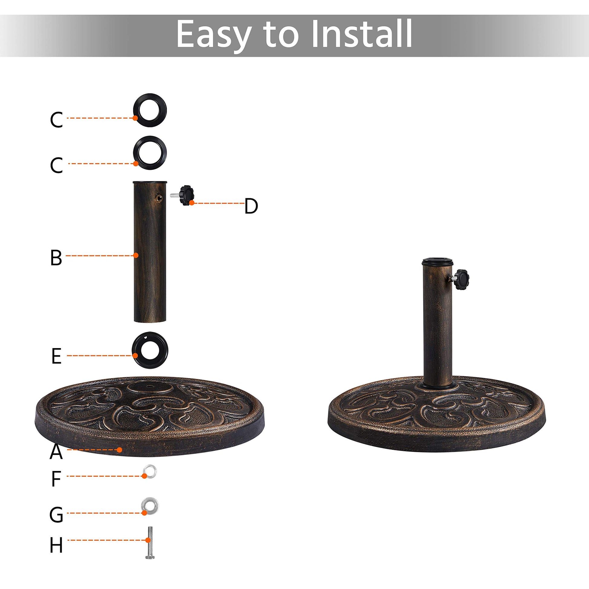 - Heavy duty oriented: This patio market umbrella base stand is made of strong and durable resin and iron, which is really hard and long-wearing. Resin made of outdoor umbrella base stand is durable and stable, perfect for outdoor usage.