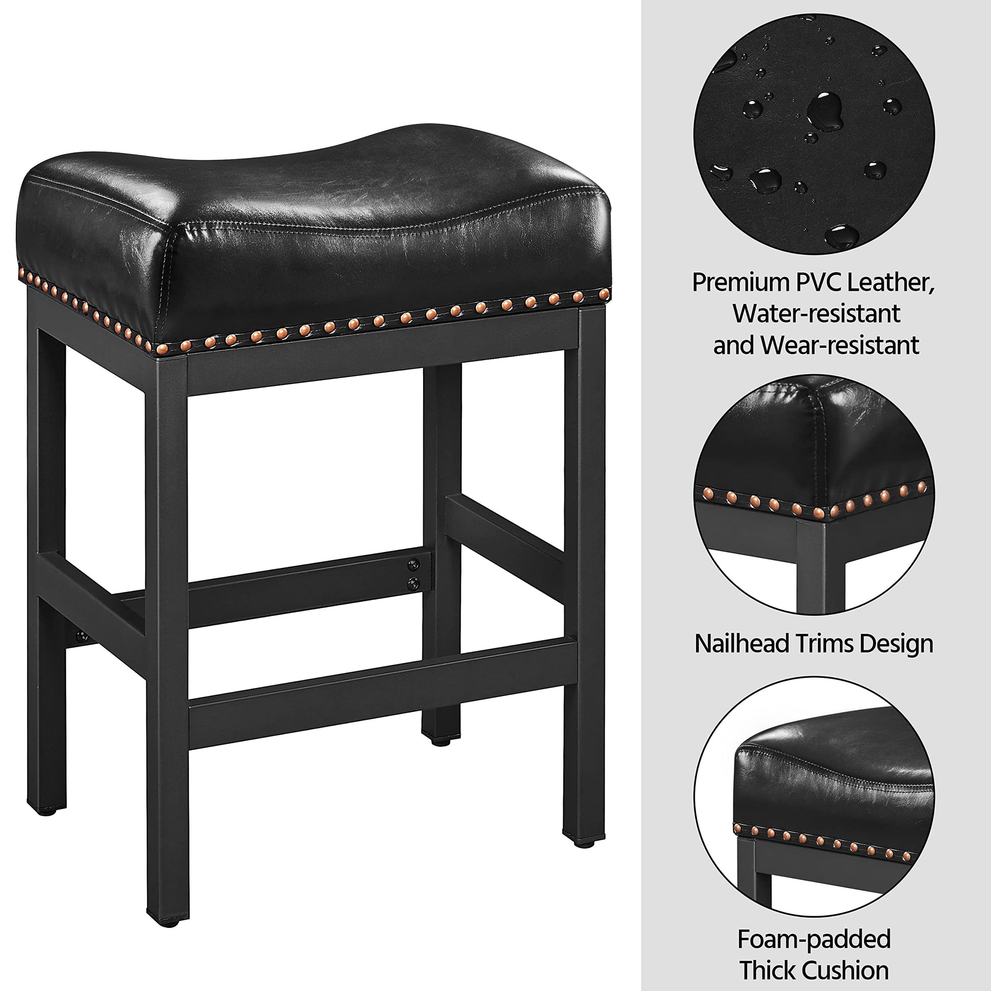 - These 2pcs kitchen counter stools show an antique style with water-resistant faux leather, bronze-finished nailhead trims, and black metal legs, which perfectly complete and decorate your kitchen or dining room. Metallic studs adorn the seat and also add to the classical look of the stool.
