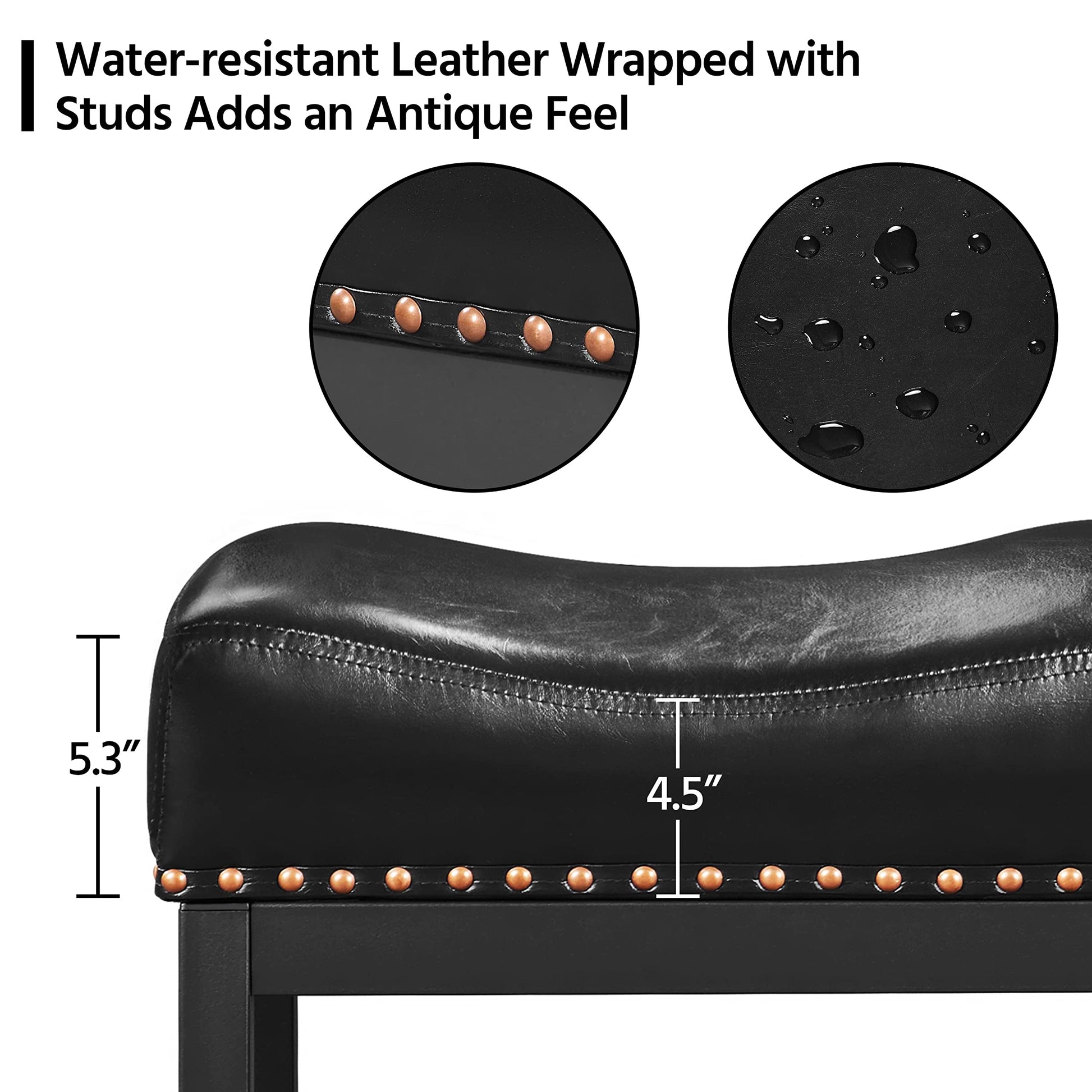 Bar Stools Set of 2 Counter Height Bar Stools Leather Saddle Stool Kitchen Stools