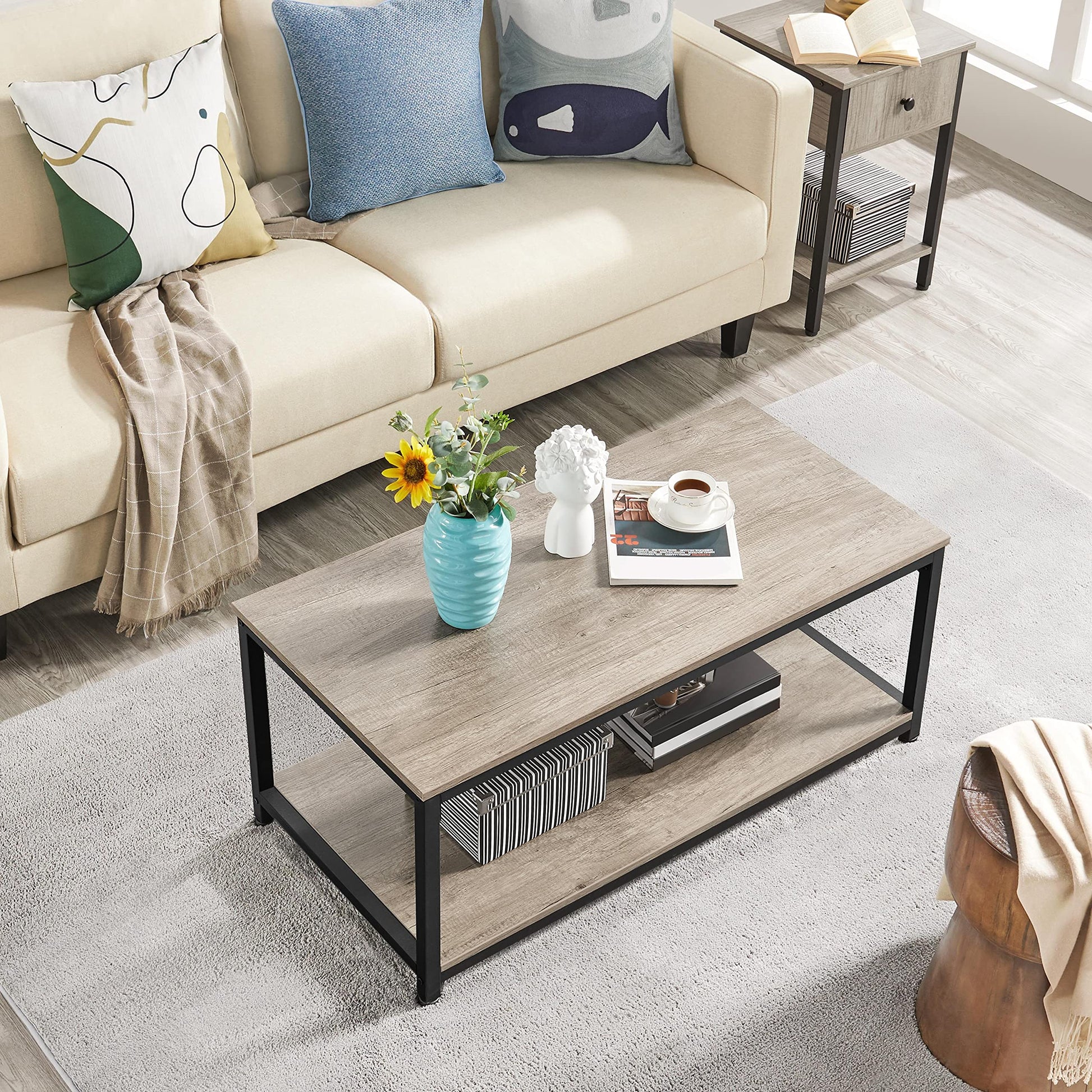 Coffee Table Tea Table with Metal Frame, Coffee Table with Open Storage Shelf