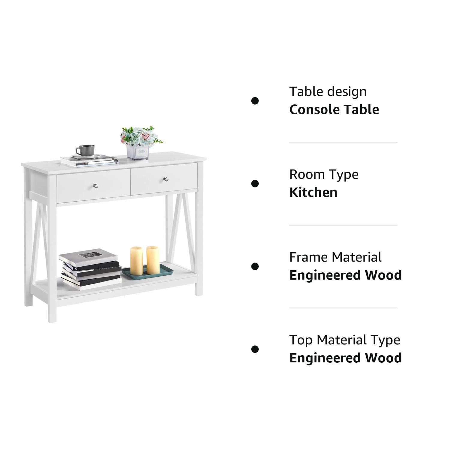 - 1 big drawer and 1 storage shelf are comprised of our console table. Your keys, cards, glasses or some frequently-used items when hanging out can all be well stored in the drawers, and your shoes or shoe boxes can be accommodated on the bottom shelf.