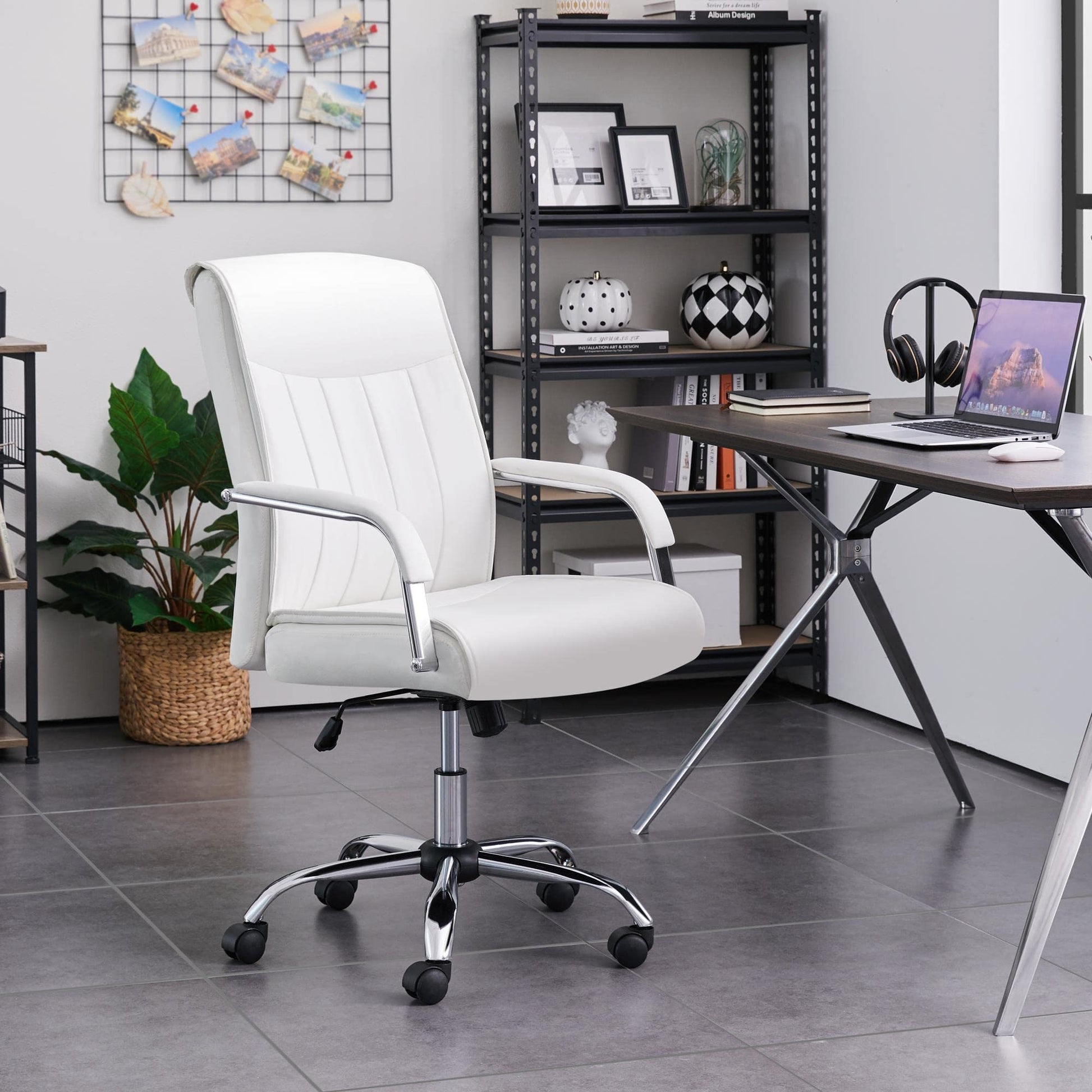 - The water-resistant PU leather surface allows the desk chair to be easily wiped clean with a simple damp cloth and a few drops of cleansers.