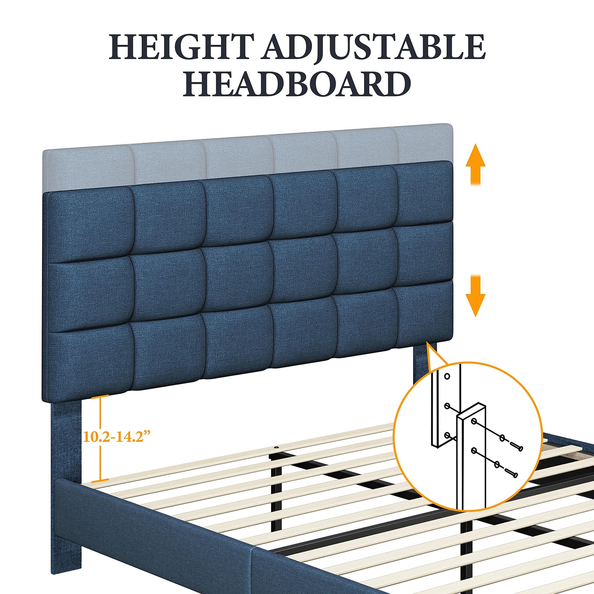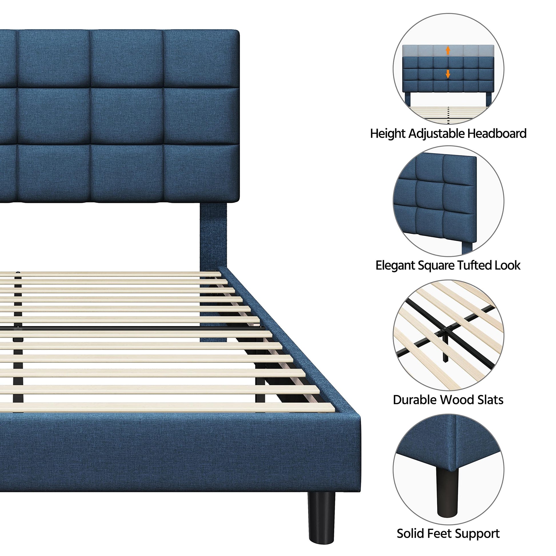 Full Upholstered Platform Bed Frame, Mattress Foundation with Height Adjustable Tufted