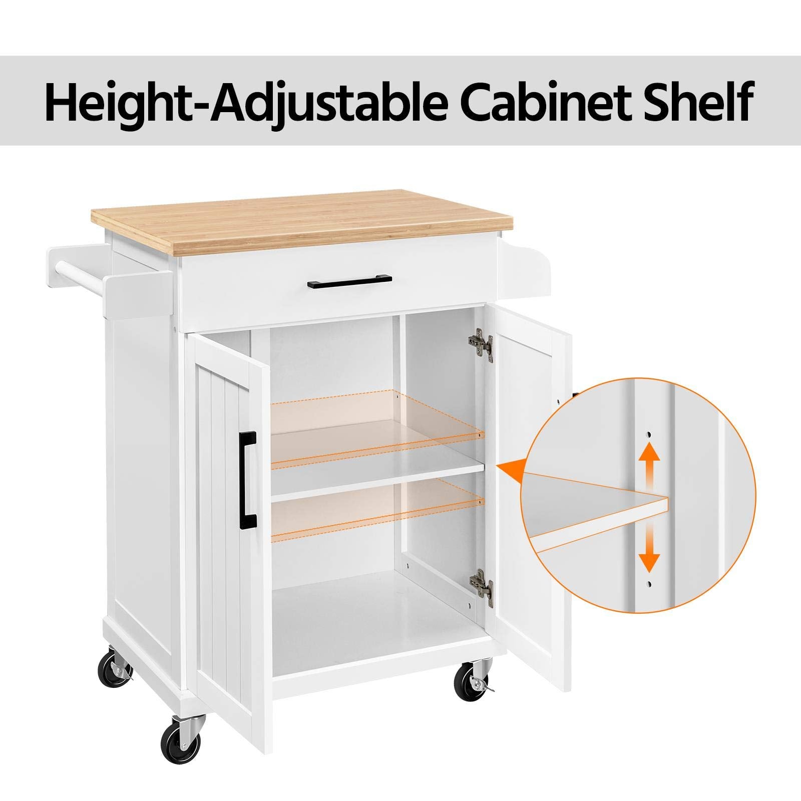 Kitchen Cart with Spice Rack Towel Holder, Kitchen Island Bamboo Tabletop
