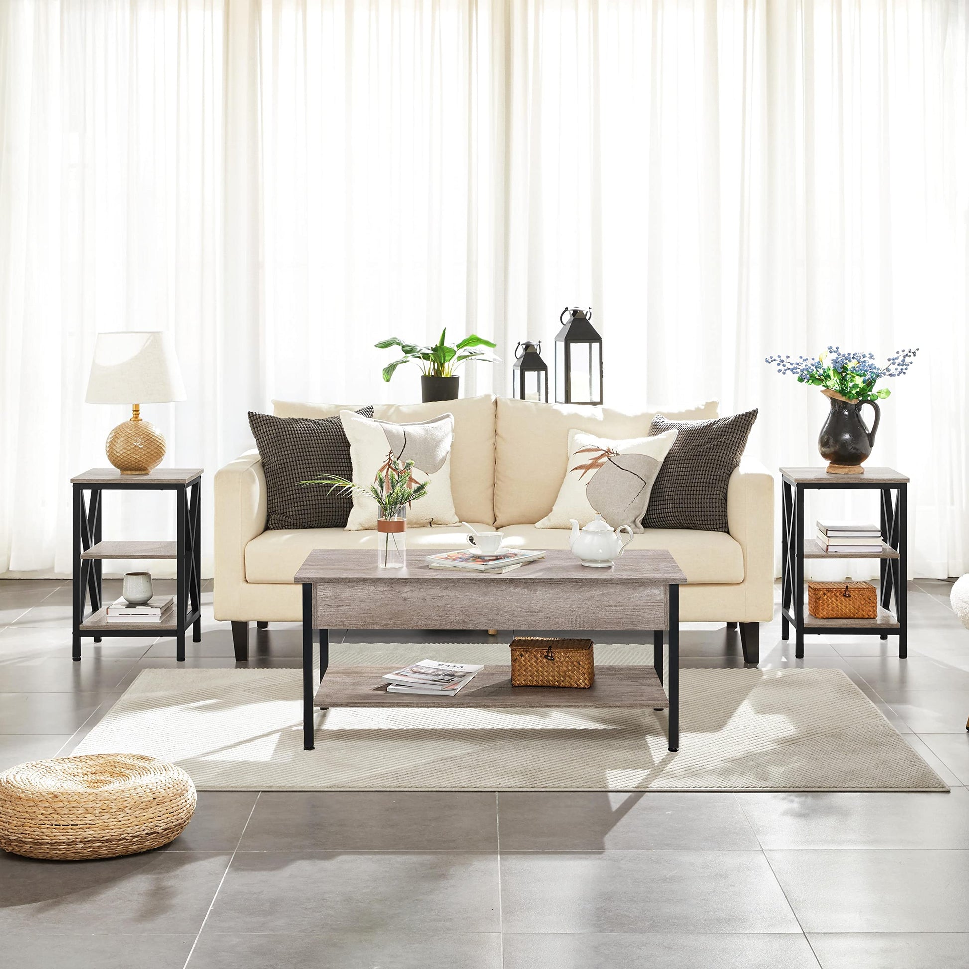 - This table set includes a pair of 3-layer side tables and a lift-top coffee table. The vintage appearance and its practical use will perfectly match your other furniture and the whole decoration style. All are very necessary supplies of high utilization rate in our daily life.
