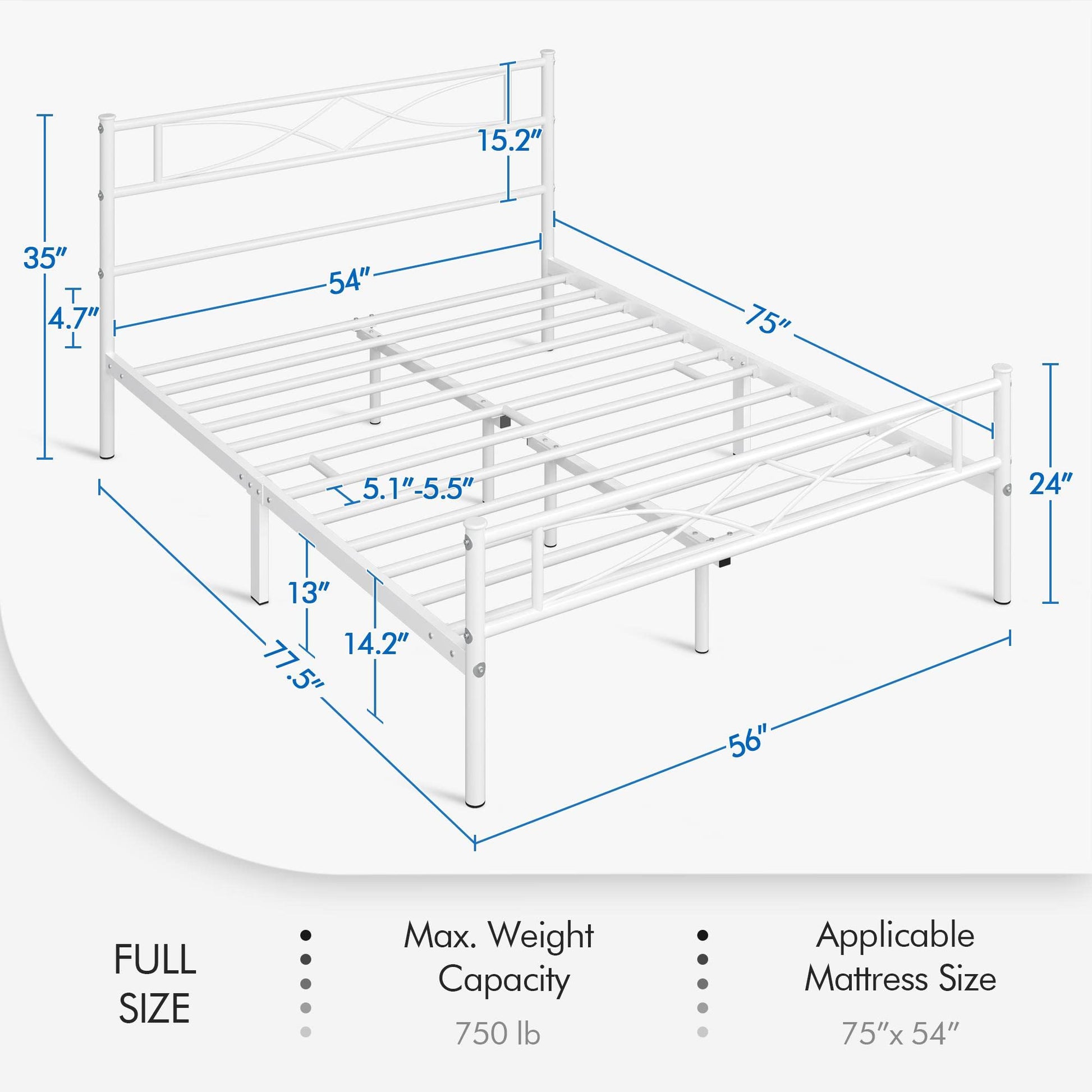 - A Dependable Foundation for Sound Sleep This full size bed frame is crafted from heavy duty powder-coated metal framework with 12 robust slats and multiple support legs, with a high load capacity up to 750 lb, offering sufficient firmness and stability free of wobbling worry.