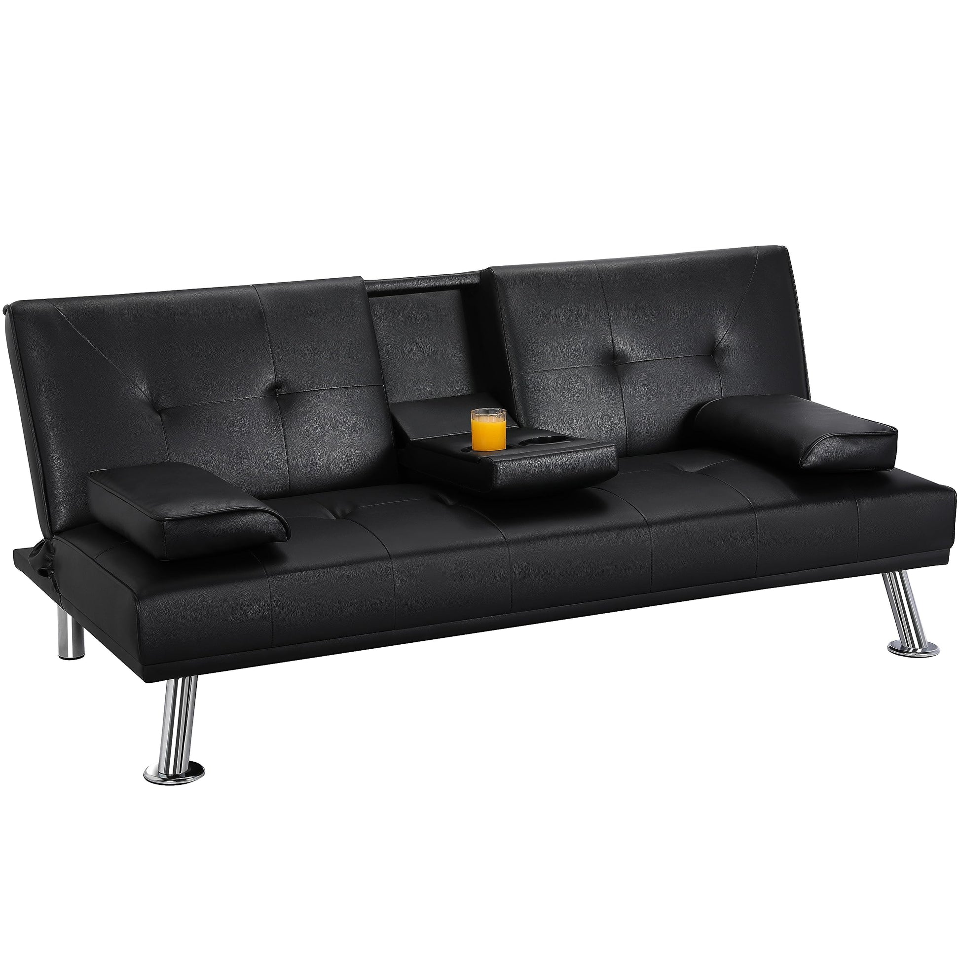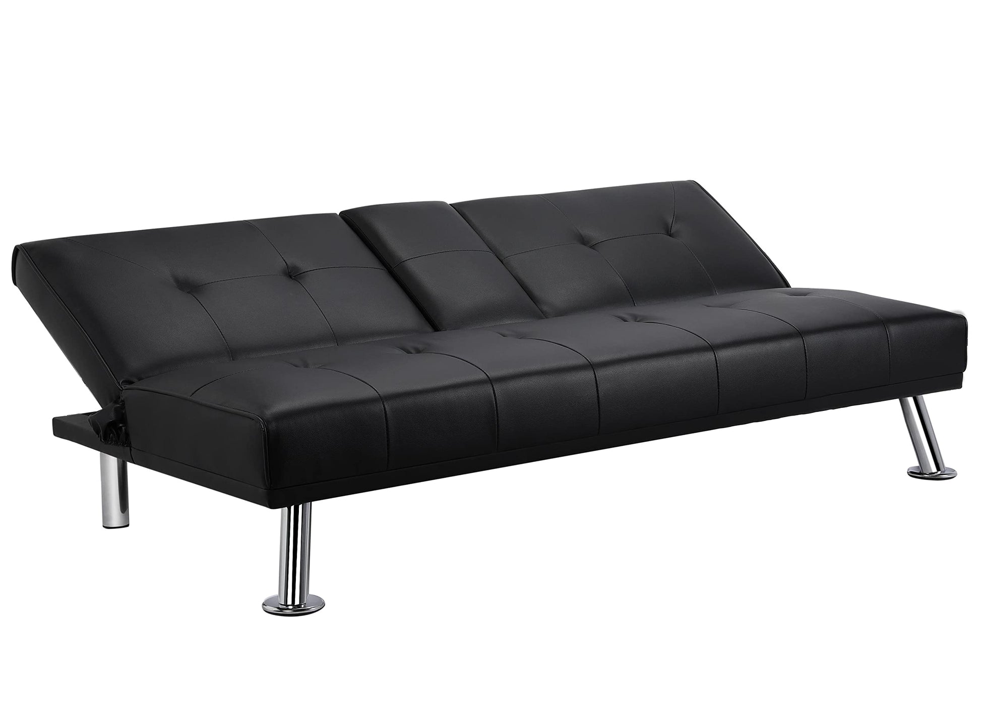 - Selected materials for comfort and durability: Supported by four Chrome-plated steel legs, this sofa bed boasts a high capacity of up to 772lbs. Resilient foam filled-cushions are upholstered in soft-to-the-touch faux leather, offering extra comfort and the ease of cleaning as well.