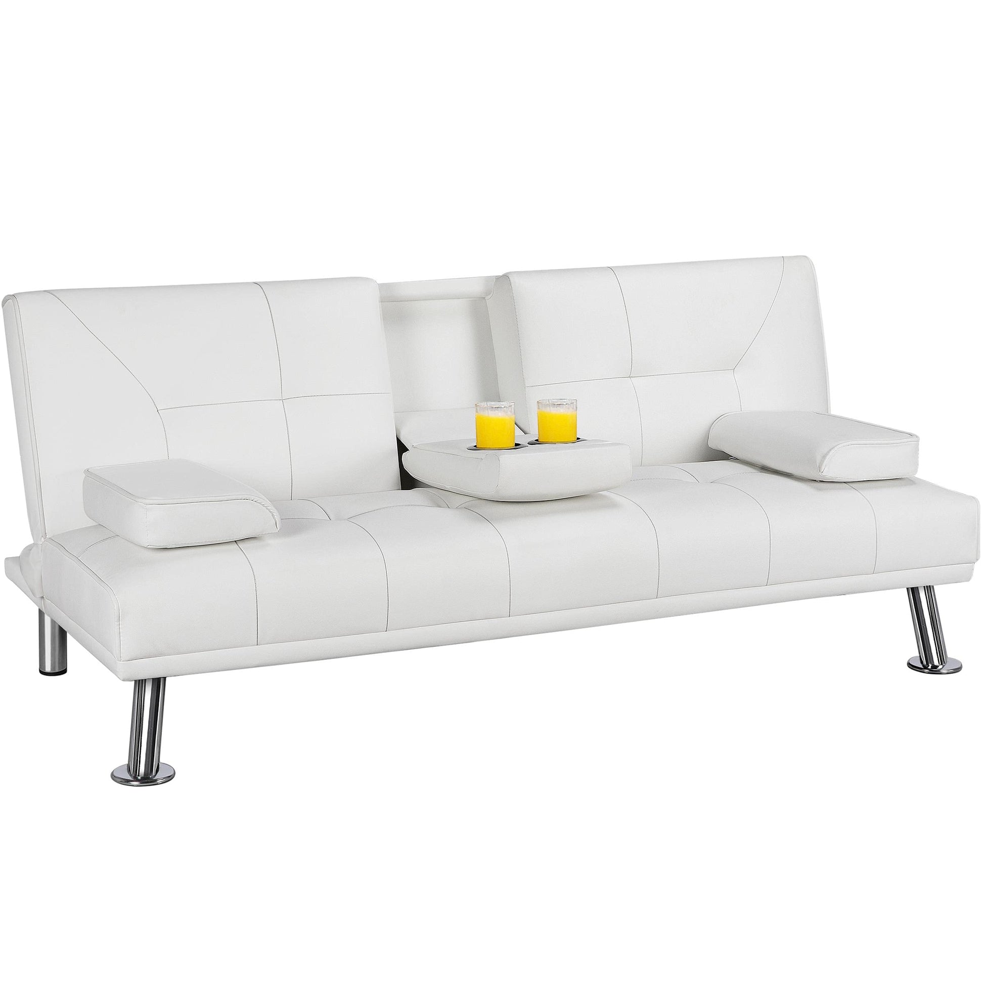 - Selected materials for comfort and durability: Supported by four Chrome-plated steel legs, this sofa bed boasts a high capacity of up to 772lbs. Resilient foam filled-cushions are upholstered in soft-to-the-touch faux leather, offering extra comfort and the ease of cleaning as well.
