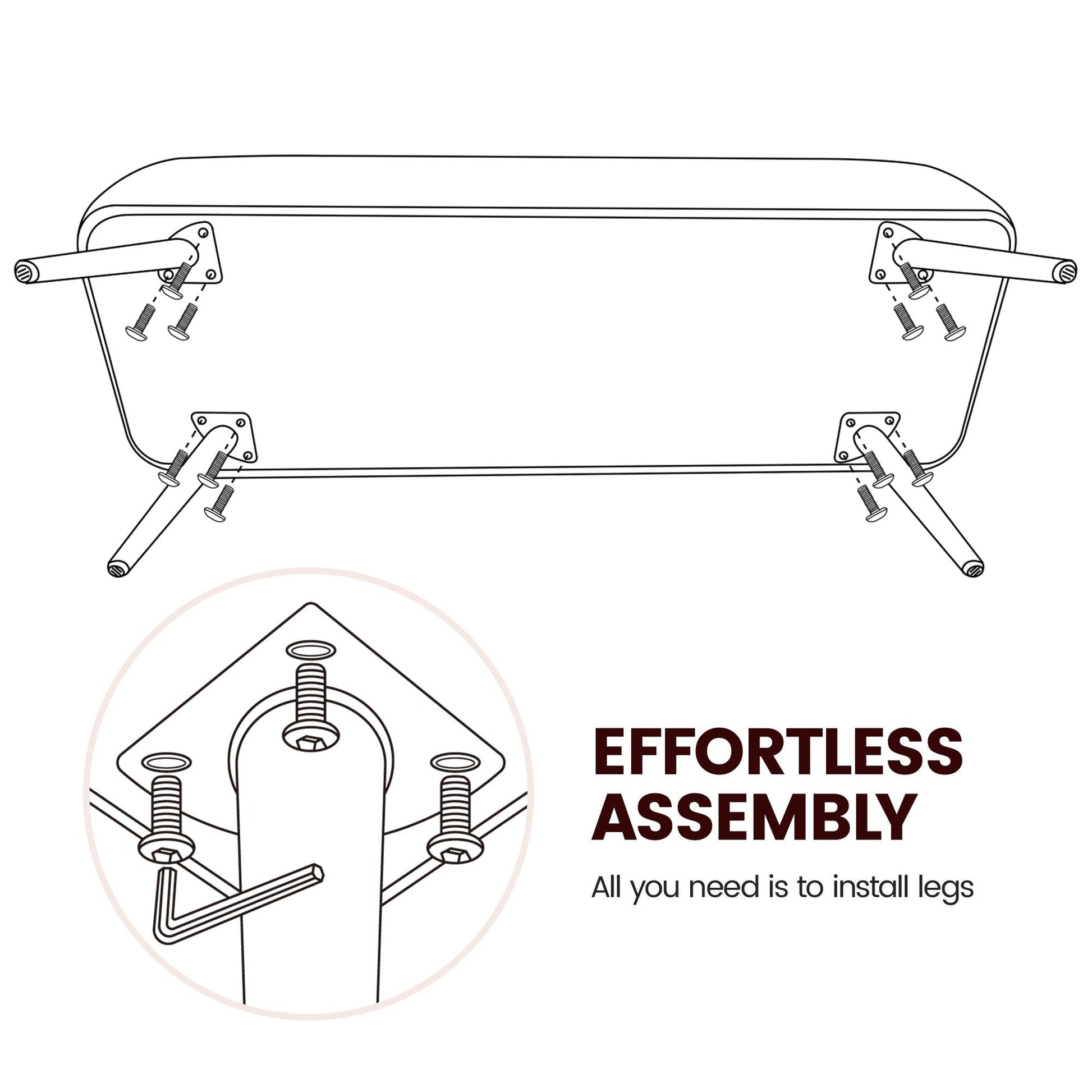 - Solid Metal Legs: The storage bench is supported by solid metal legs, which are more durable to use, boasting great weight capacity. In addition, the protective footpads are provided on the bottom