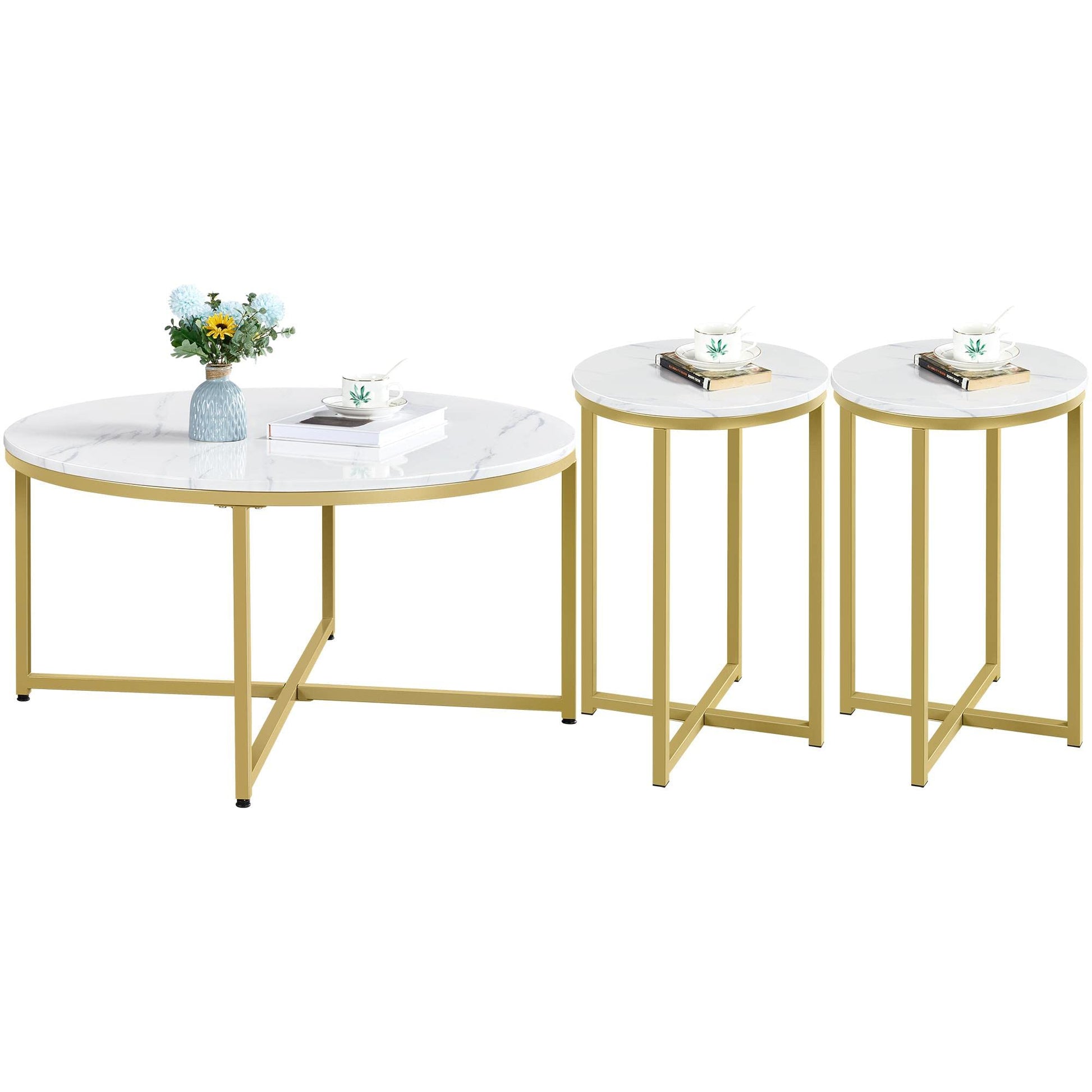 Round Coffee Table Set of 3Pcs for Living Room, Marble Coffee Table