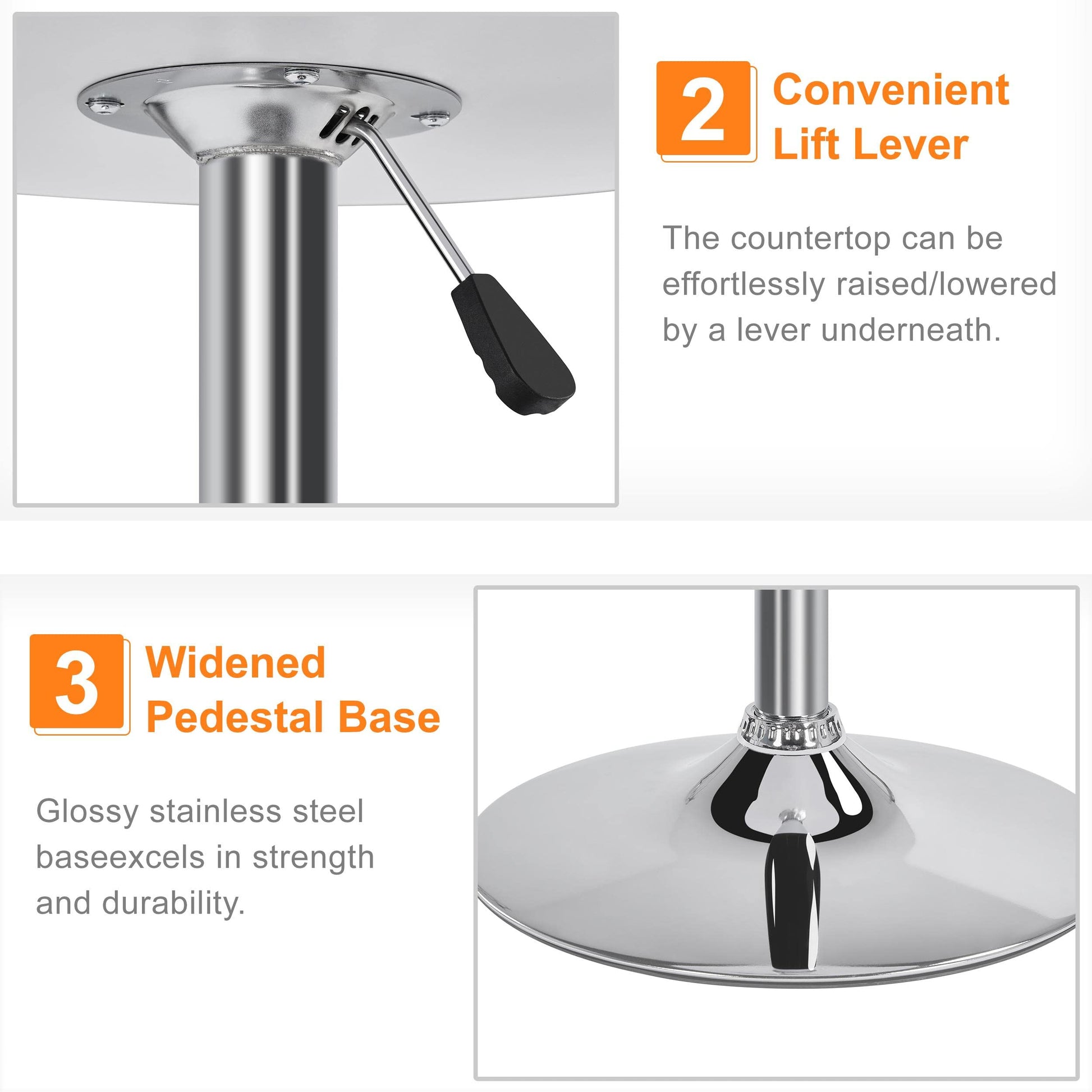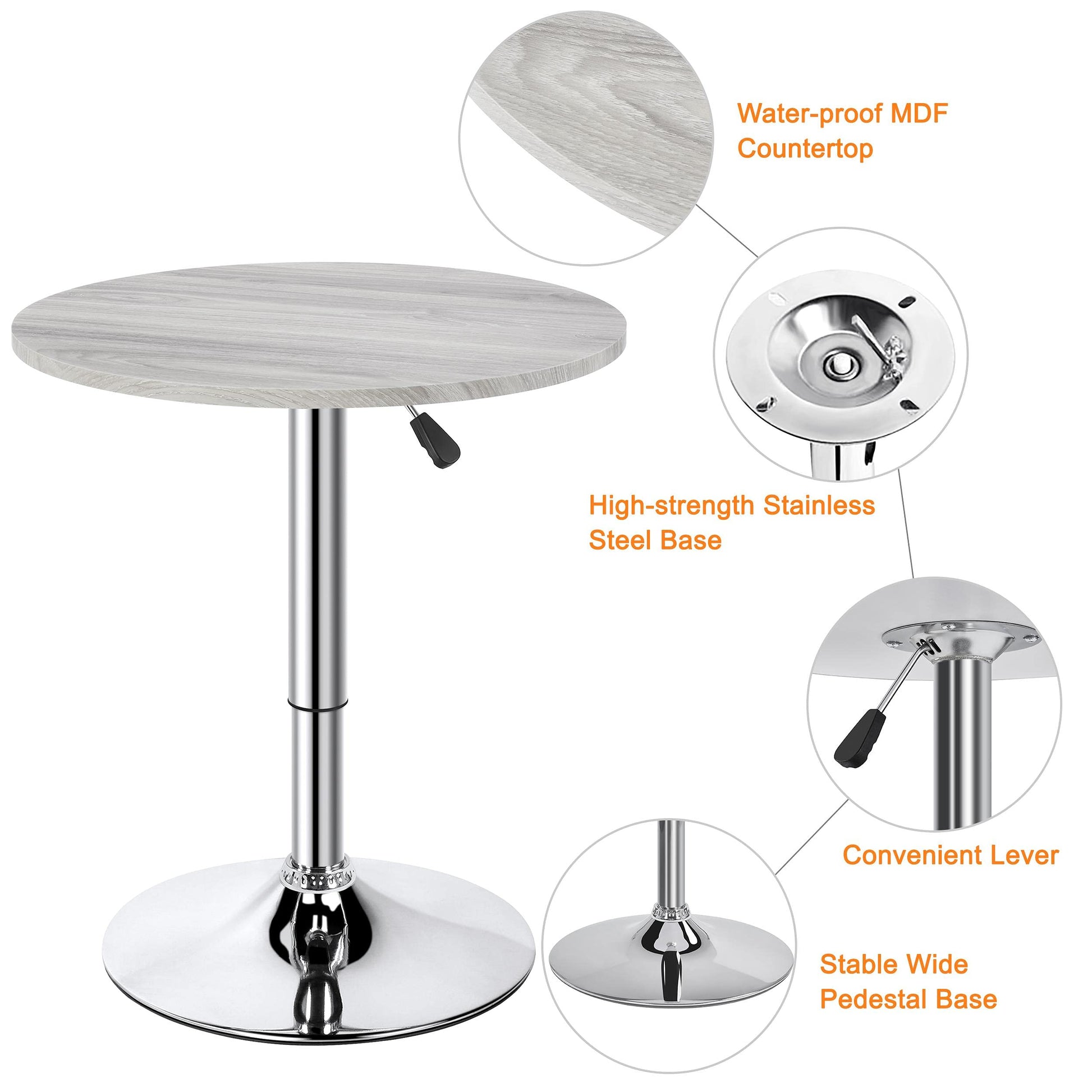 Round Pub Table Height Adjustable with 360 Swivel MDF Tabletop