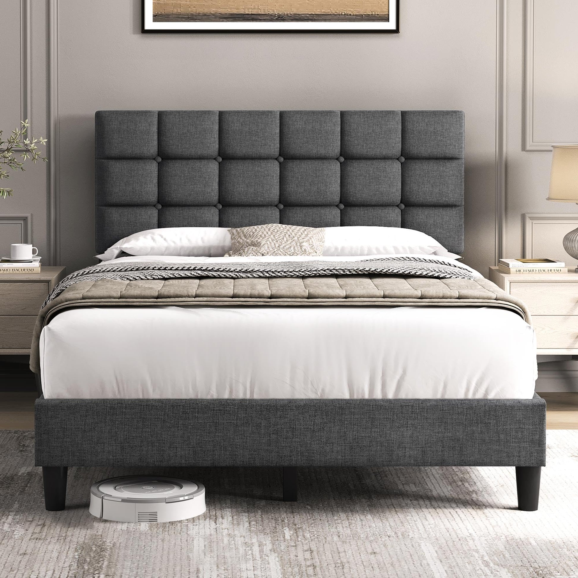 - No Box Spring Needed: Require no bulky box spring or any other extra foundation. After assembling the upholstered bed frame with adjustable headboard, just put your latex, foam or spring mattress on the wooden slats, and everything is all set