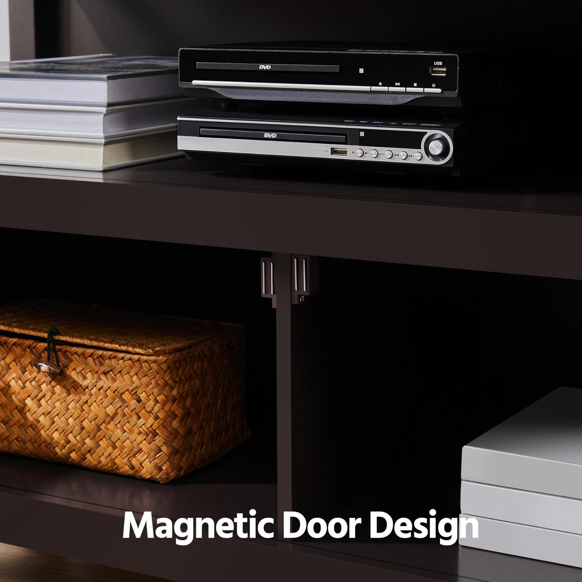 - The TV stand contains 2 enclosed storage compartments, the jumble of odds and ends that are not sightly can be well accommodated without being bothered by dusting.