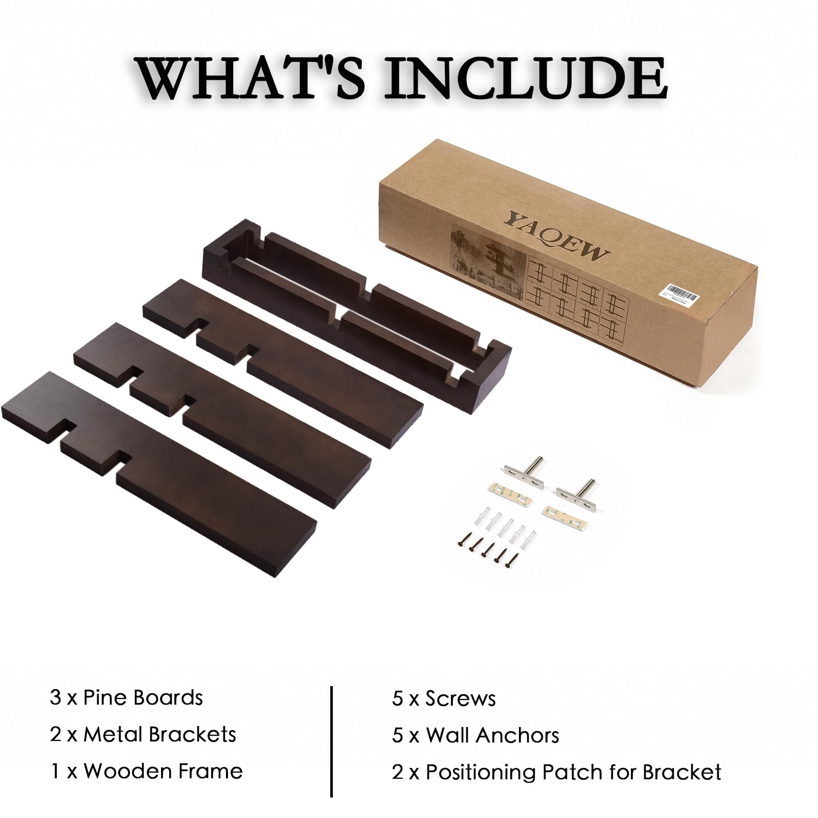 - Sturdy and Long-Lasting Our floating wall shelves are made from solid pine wood and stained in a dark walnut color. The invisible metal brackets secure that the shelf fits perfectly with the wall, and the double mortise and tenon design adds stability to prevent the boards from wobbling.