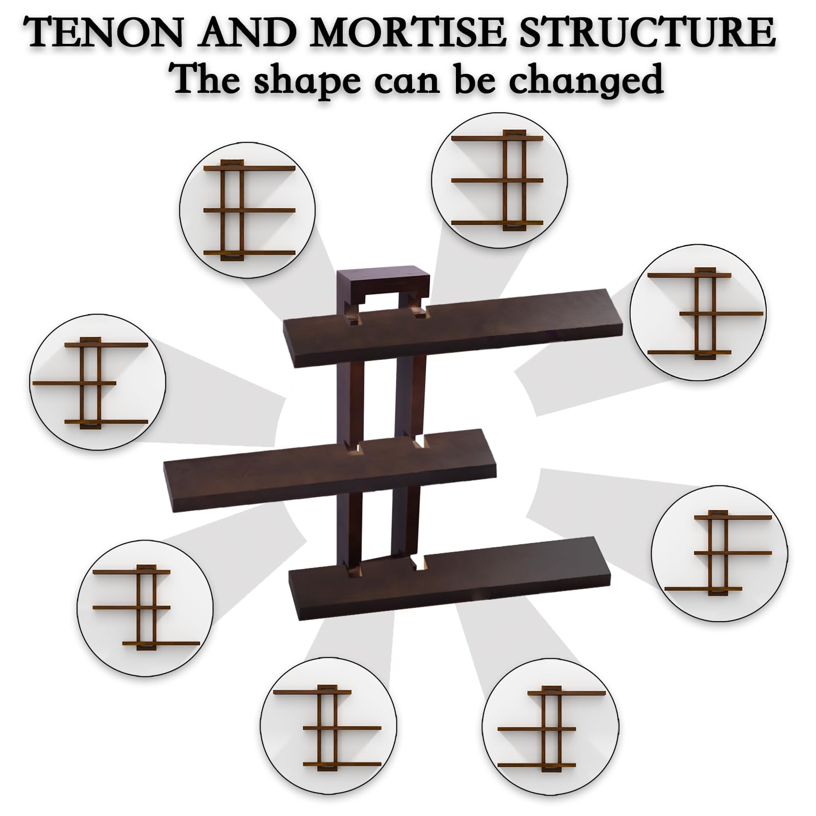 - Modifiable Design The floating shelf wood adopts mortise and tenon construction. Simply fix the main frame to the wall and freely combine the remaining boards into eight different shapes without causing damage to the wall and avoiding aesthetic fatigue.