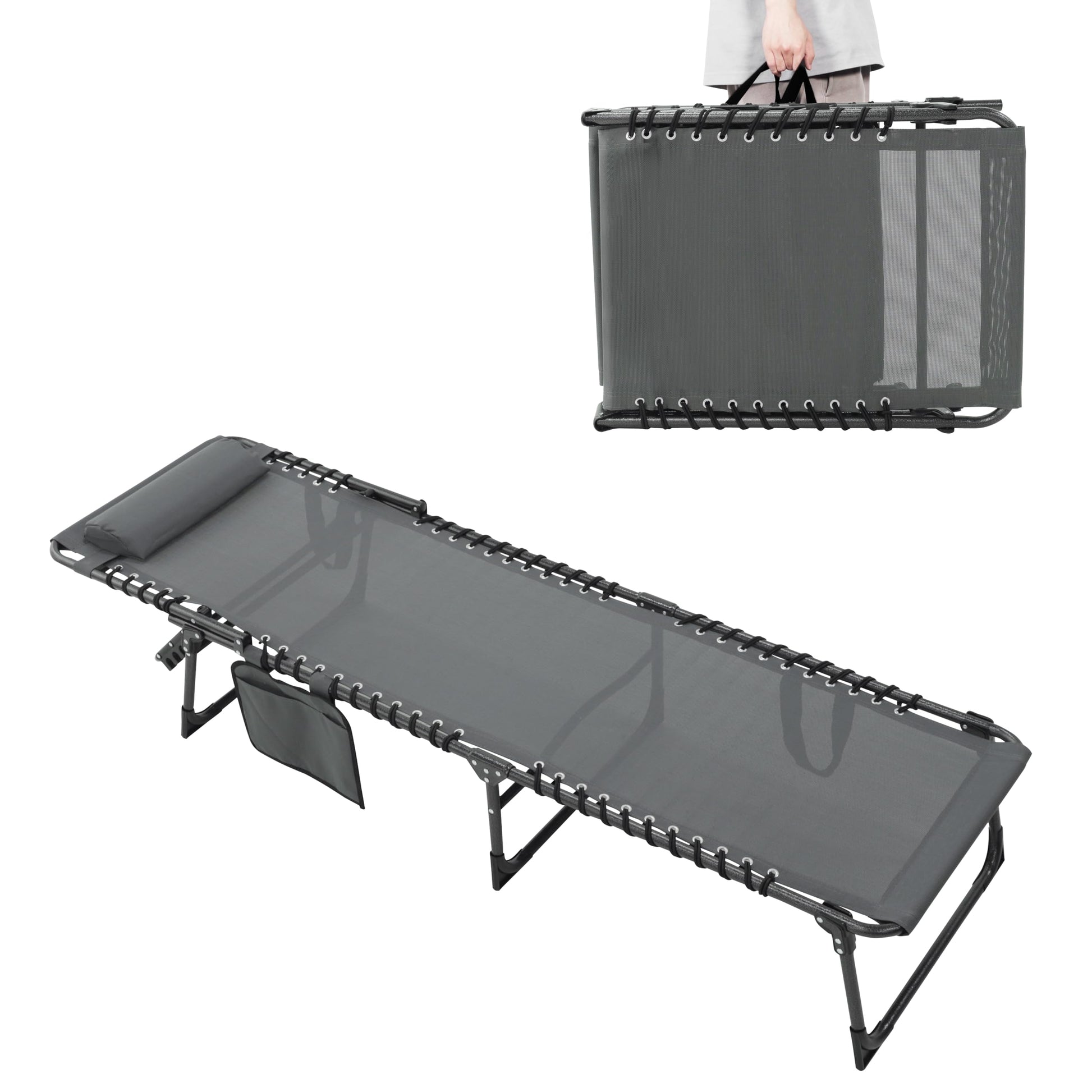 Outdoor Foldable Chaise Lounge Chair with Detachable Pillow & Pocket