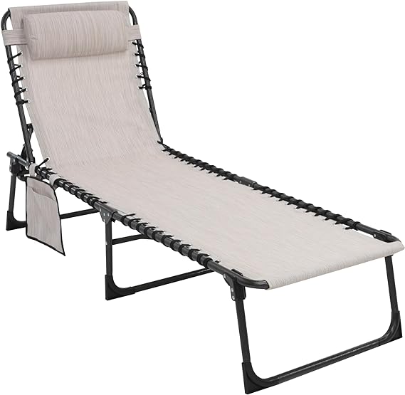 - 4-POSITION LOUNGE CHAIR This outdoor chaise lounge chair is designed with 4 level adjustable back to meet your different needs, which allows you to comfortably recline, sit or lie flat and is an ideal place for reading, sunbathing or napping.