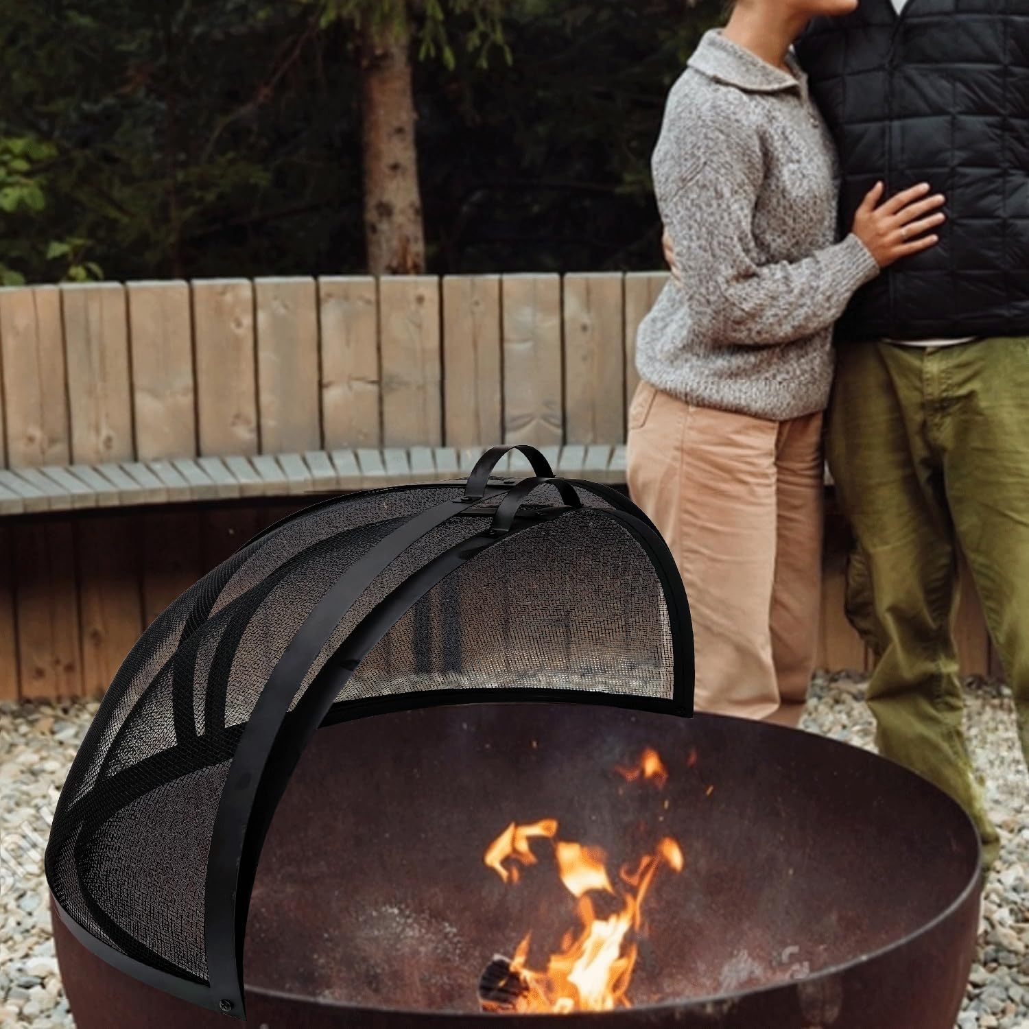 - Protective Function: The fire pit spark screen serves is a crucial safety device, with tightly woven mesh design, effectively shielding individuals and surrounding areas from flying sparks and embers generated by the fire pit.