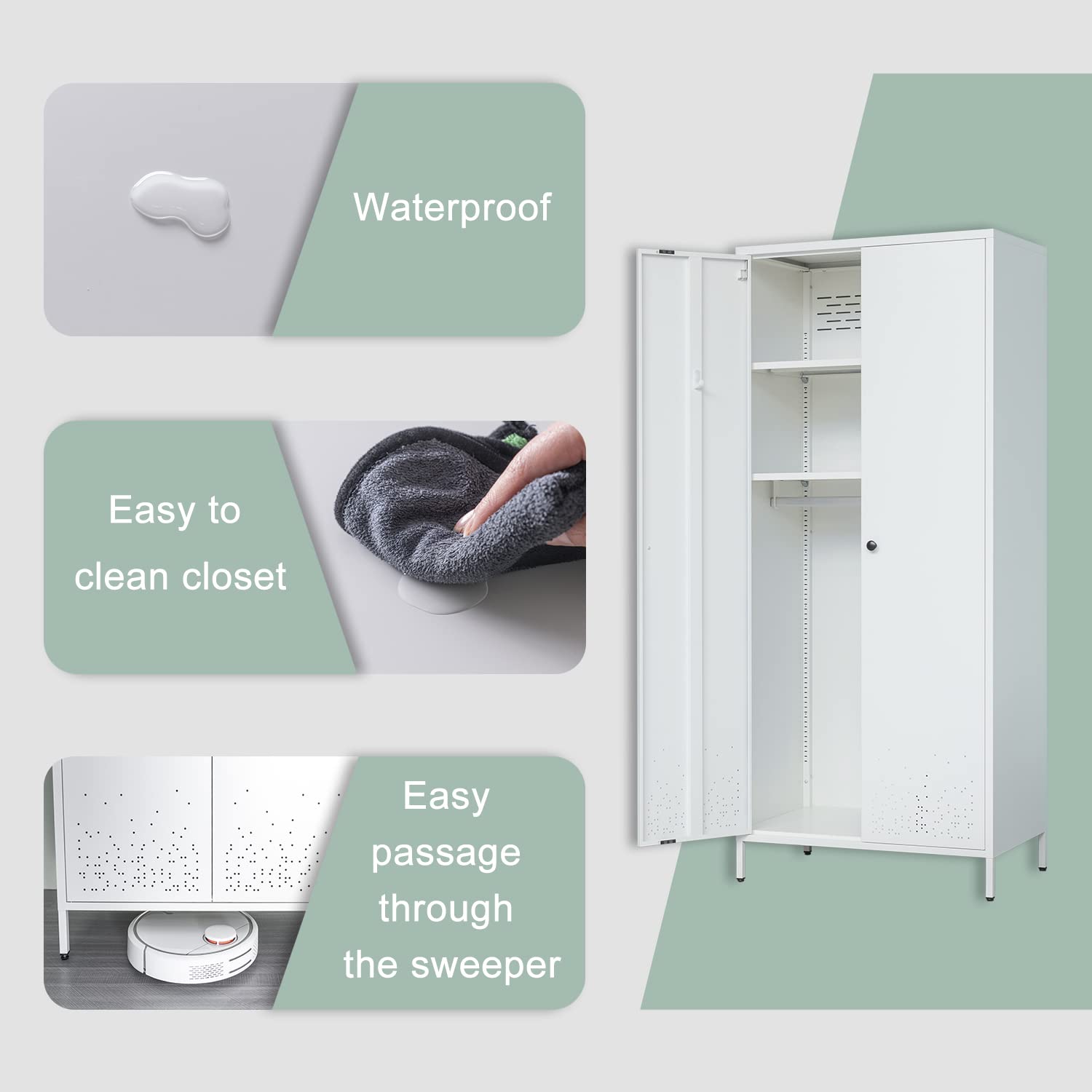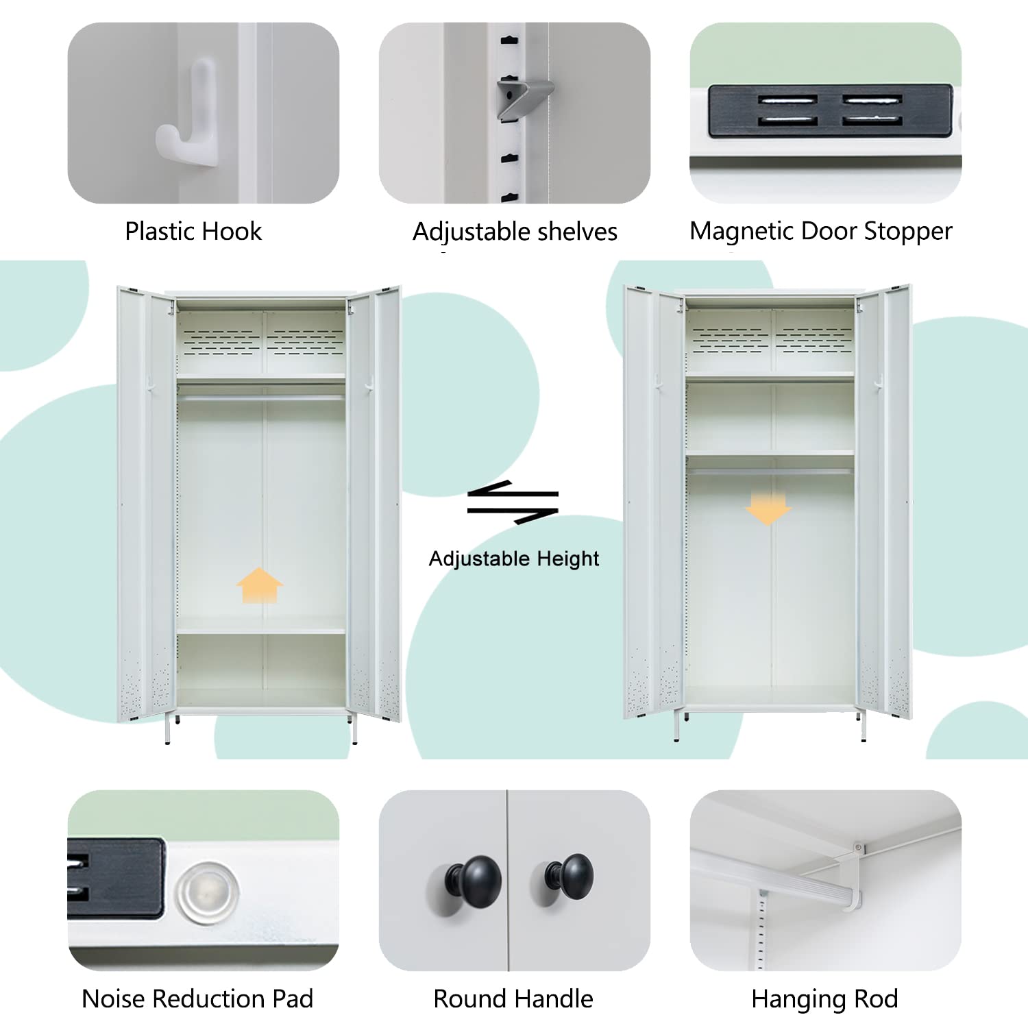 - Safety tested stability helps reduce rollover accidents. This wardrobe has magnetic silent pad. It not only gives you a quiet closing sound, but also keeps your closet door closed for convenience in life!