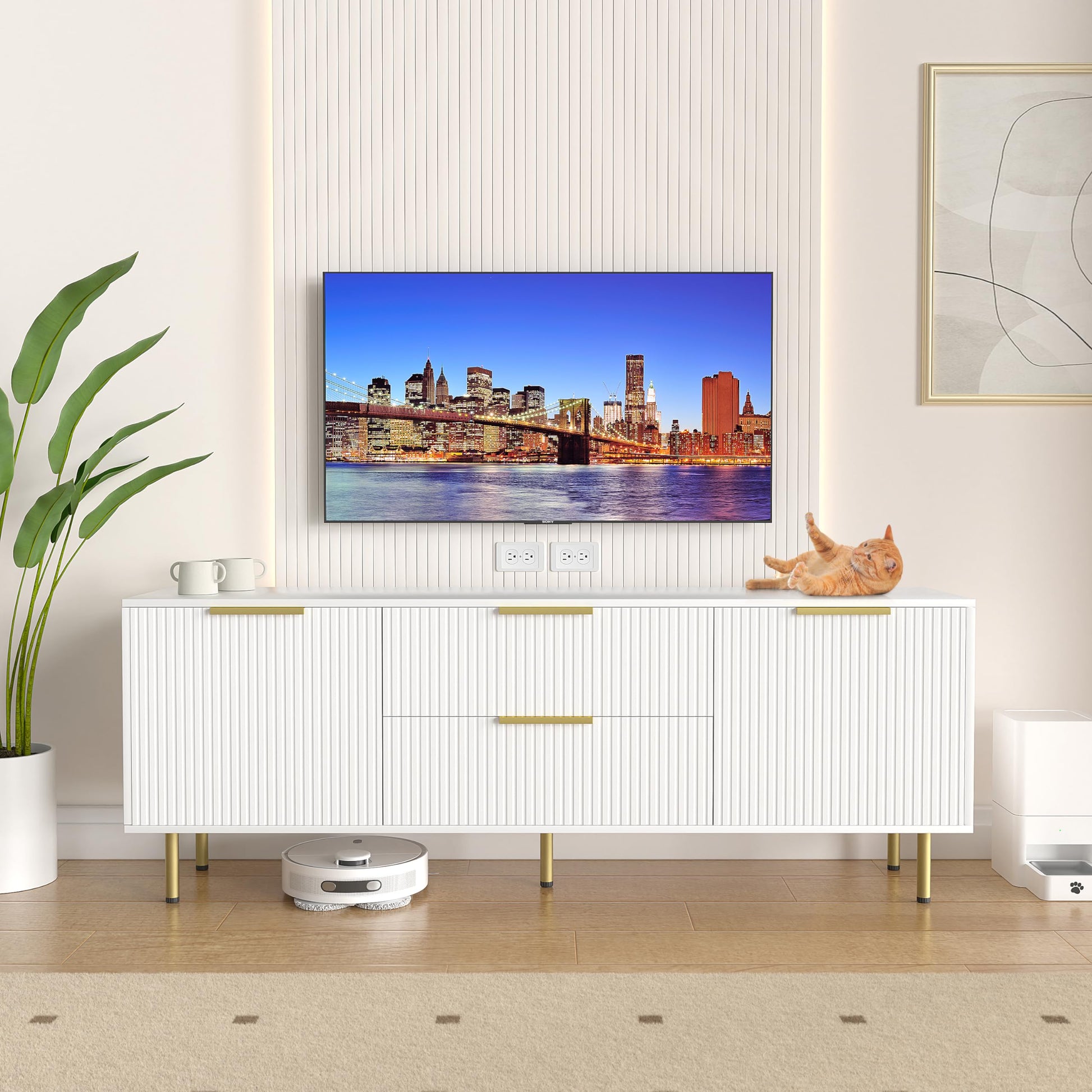 - MID CENTURY STYLE: The TV cabinet is designed with fluted panels in the most natural and minimalist colors, adapting to the layout of many spaces and colors, bringing you a different experience. Also, we use the design of 4 golden handles and 6 golden cabinet legs, embellished with gold color, adding more elegance and simplicity