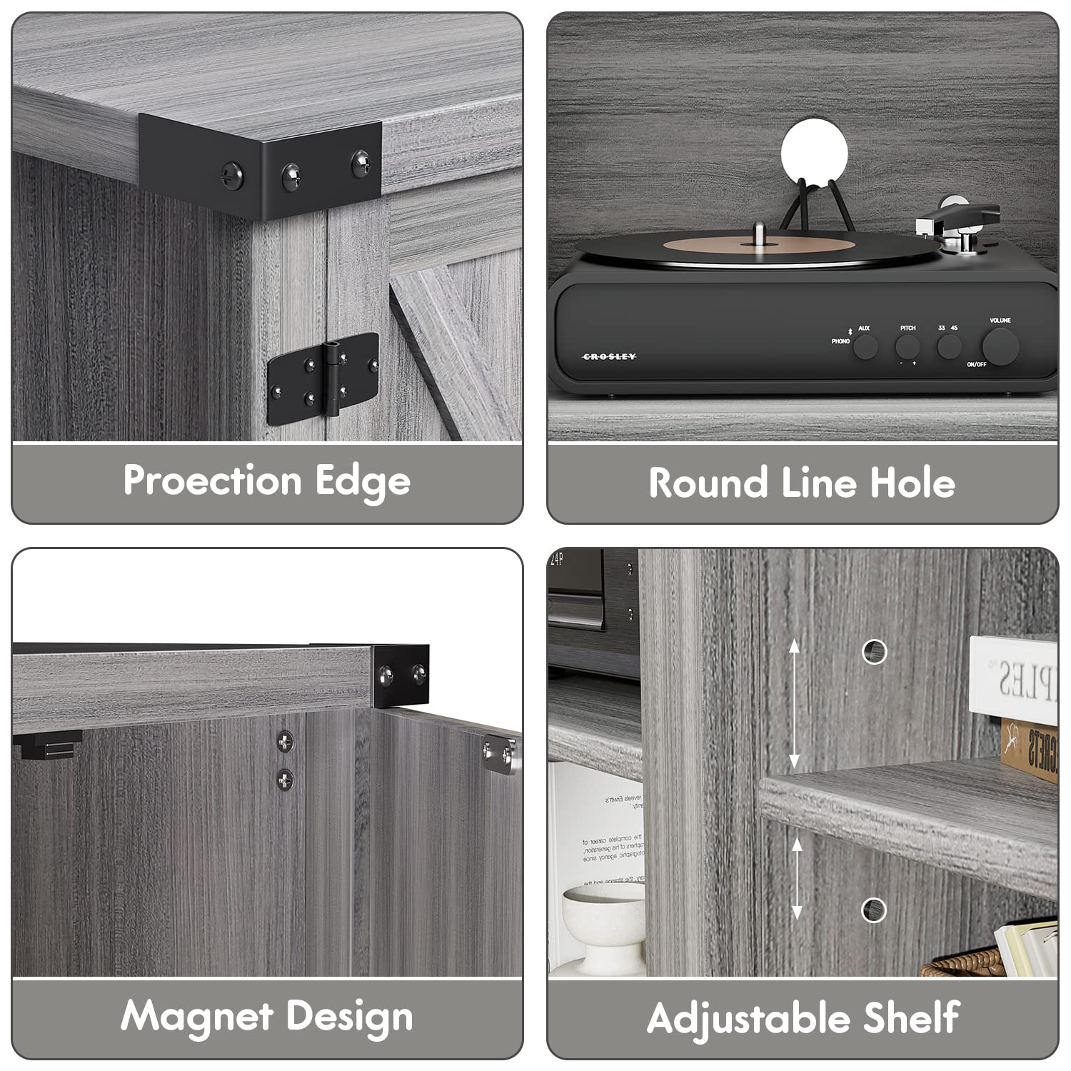 Modern Farmhouse TV Stand with Two Barn Doors and Storage Cabinets for Televisions