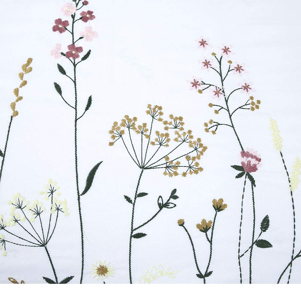 - FLOWER EMBROIDERED DUVET COVER: Spring pink yellow wildflowers in array of color are artfully embroidered on a white percale cotton offering a subtle elegant farmhouse design