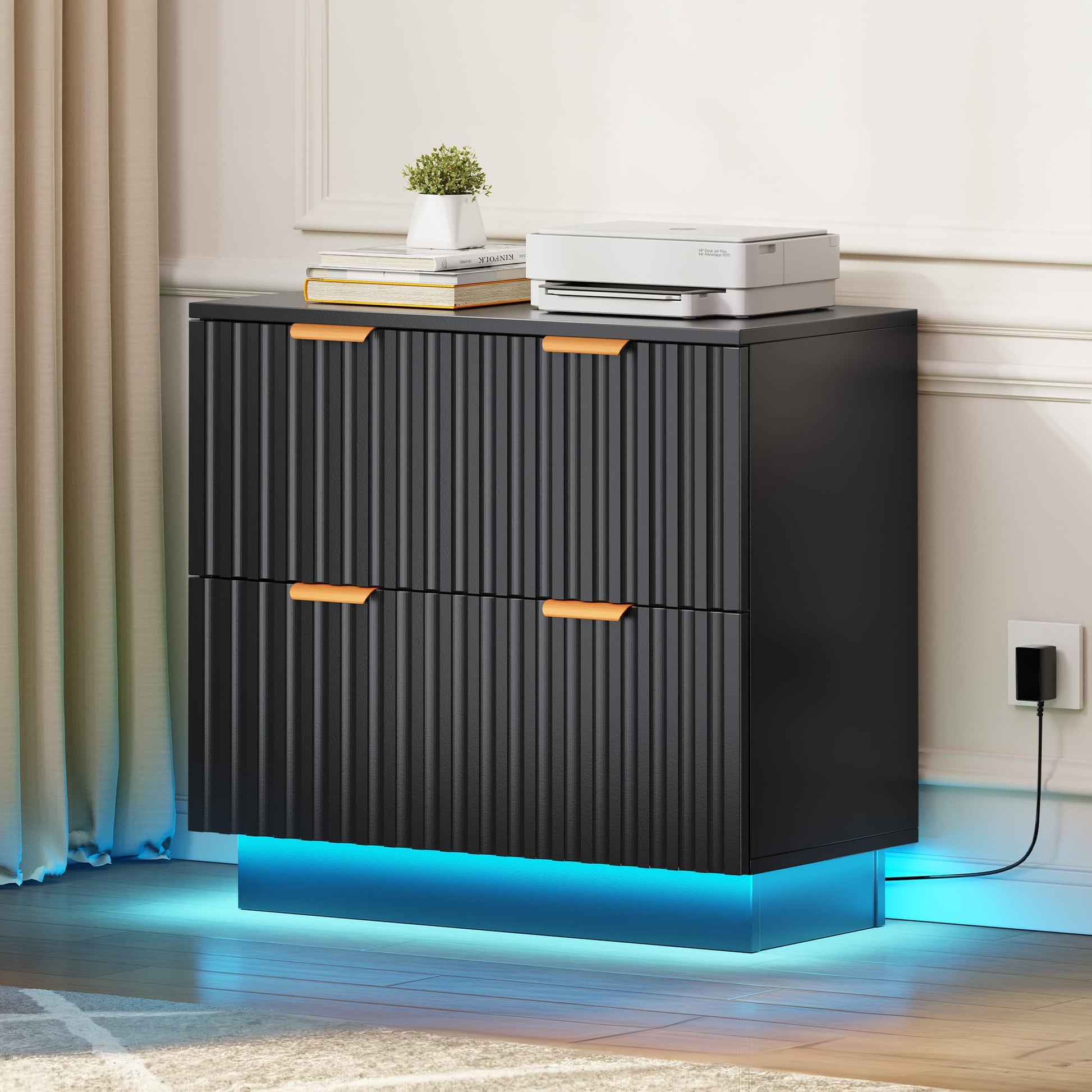 2 Drawer File Cabinet with Led Light, Modern Filing Cabinet