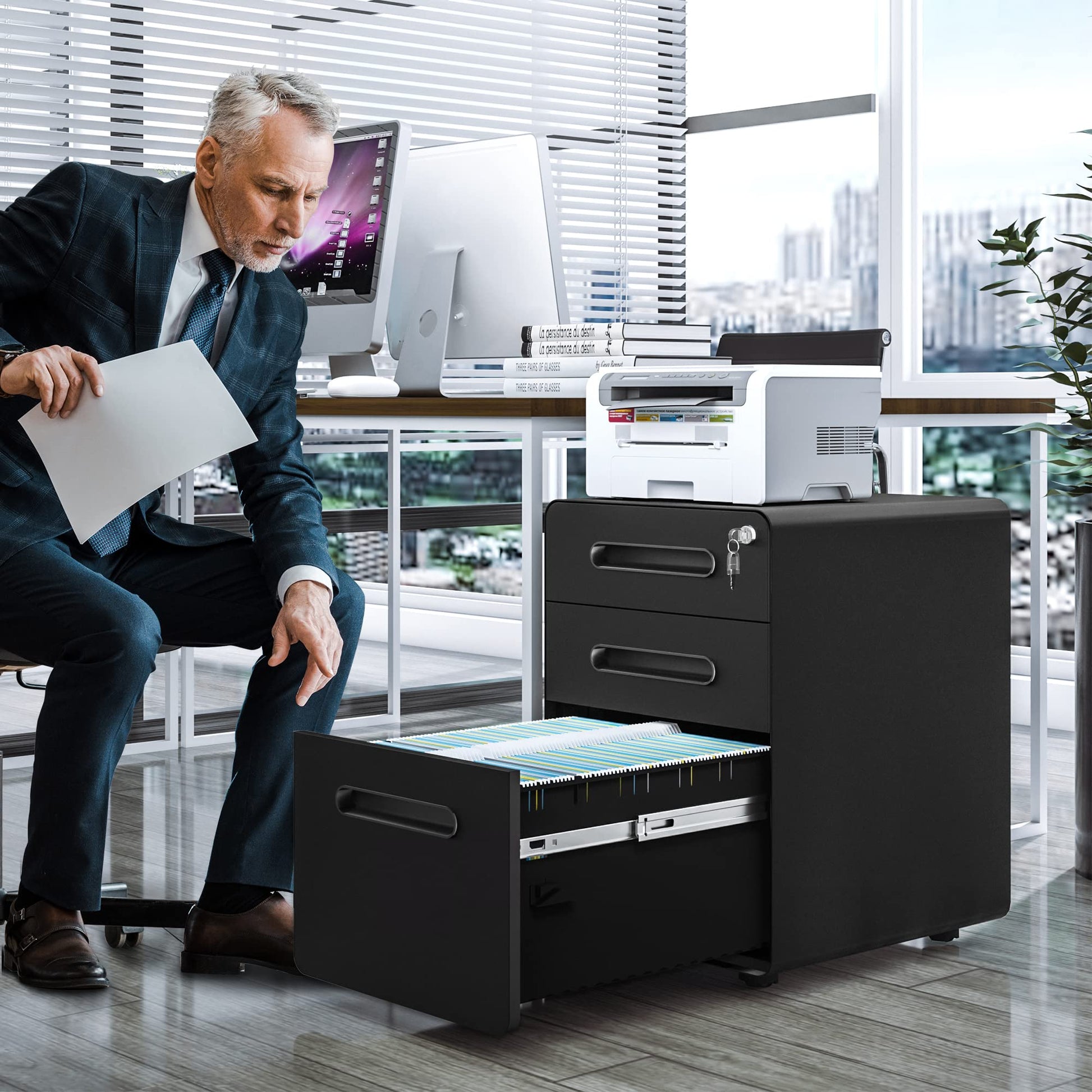 3-Drawer Rolling File Cabinet, Metal Mobile File Cabinet with Lock, Filing Cabinet Under Desk fits Legal/A4 Size