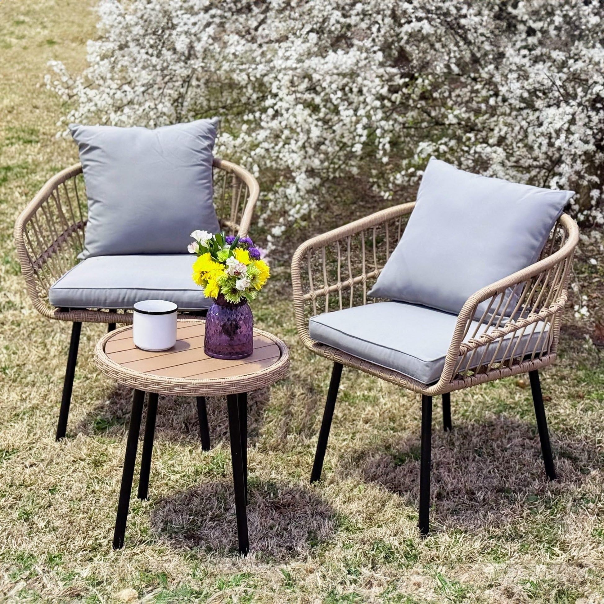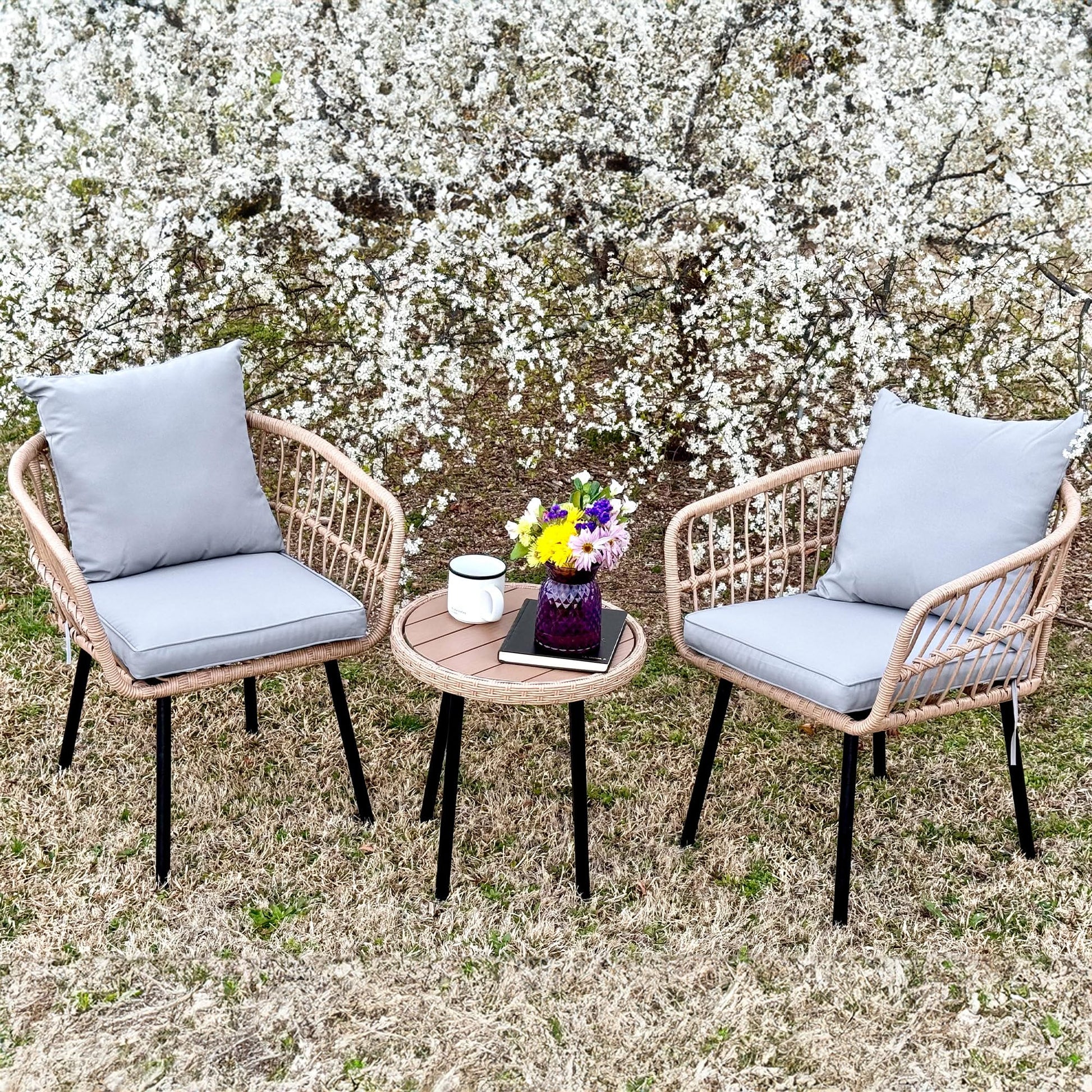 3 Pieces Outdoor Bistro Set, All-Weather Wicker Patio Furniture Set