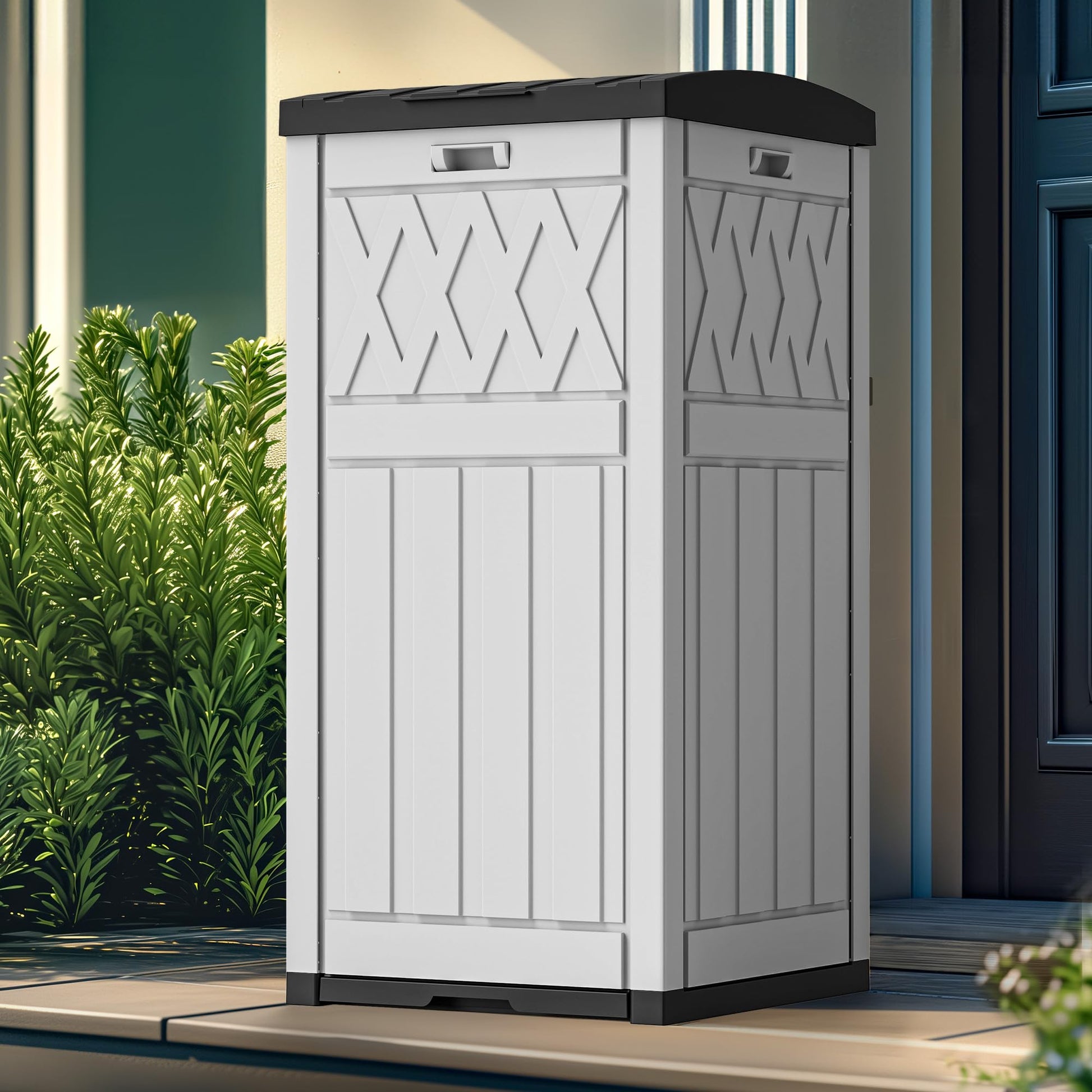 33 Gallon Outdoor Storage Box, Vertical Outdoor Storage for Garden Tools Pillows Sports