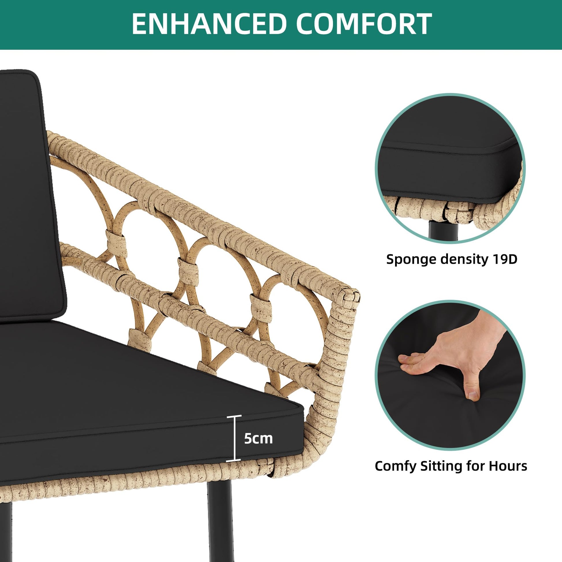 YITAHOME 4 Pieces Patio Furniture Set, Wicker Outdoor Bistro Set, All-Weather Rattan Conversation Set with Loveseat Chairs Table Cushions for Backyard, Pool, Deck, Garden – Black