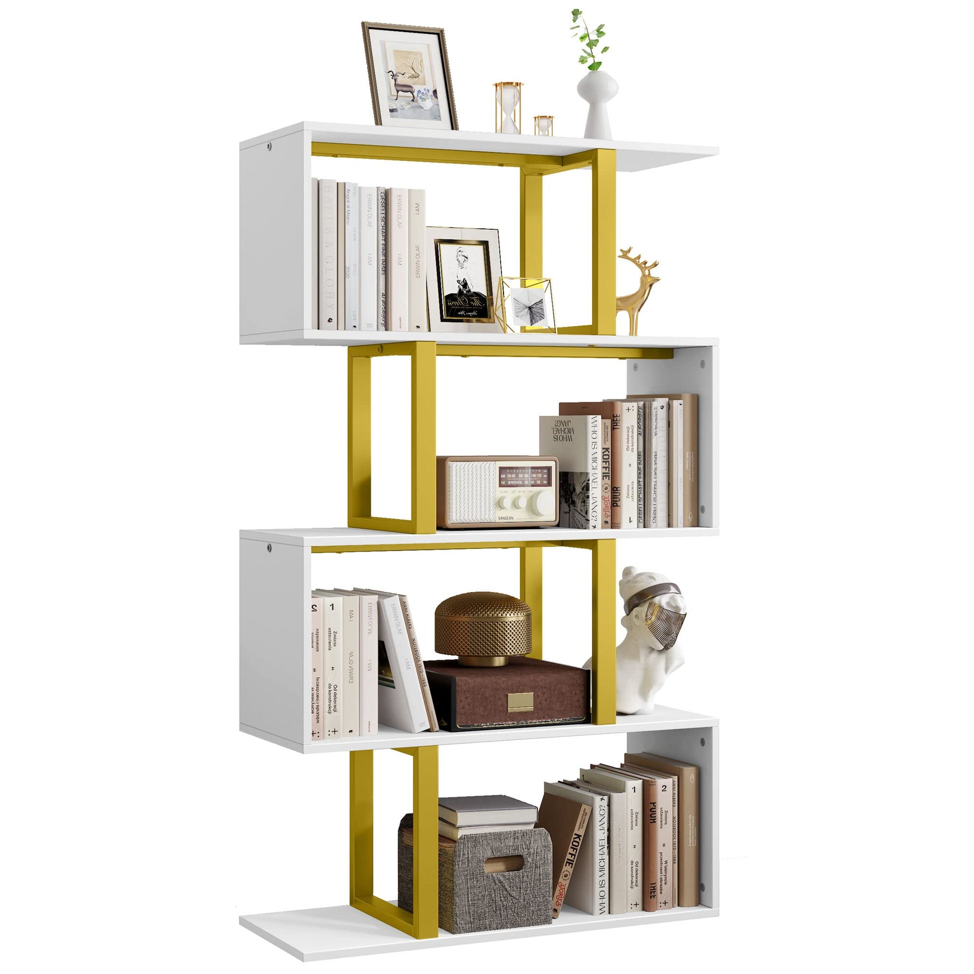 5-Tier Bookshelf, S-Shaped Z-Shelf Bookshelves and Bookcase, Modern Freestanding Multifunctional Decorative Storage Shelving for Bedroom Living Room Home Office, Gold
