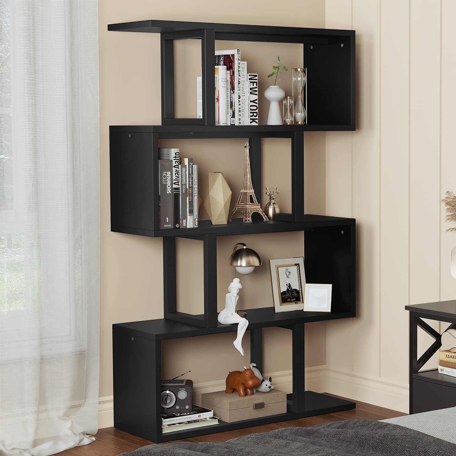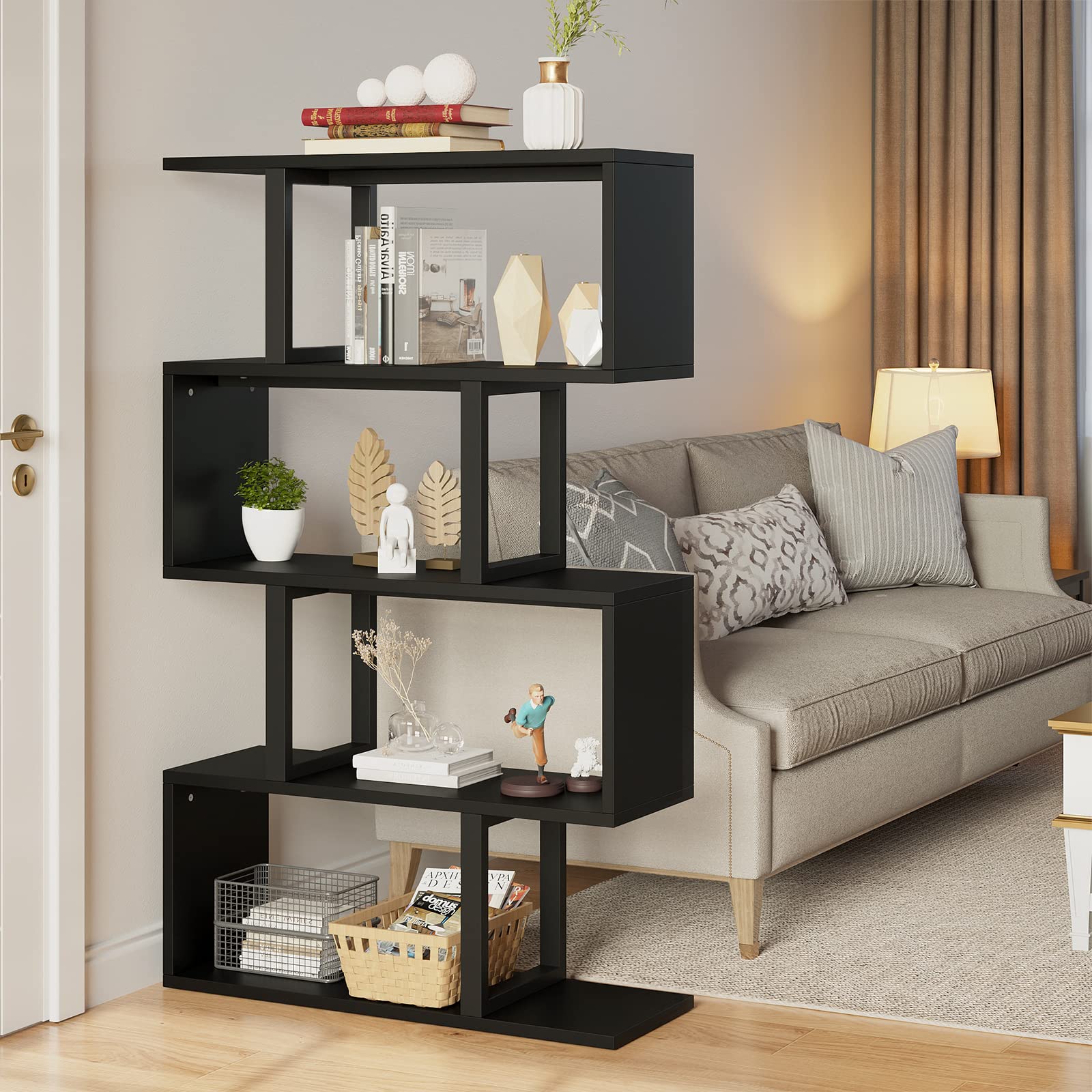 - S-SHAPED DESIGN- Unique S-shape design makes this bookshelf a work of art. 5-tier storage space satisfies various needs. Can be used as a bookcase, display cabinet or room divider in your living room, bedroom, hallway, porch or office.