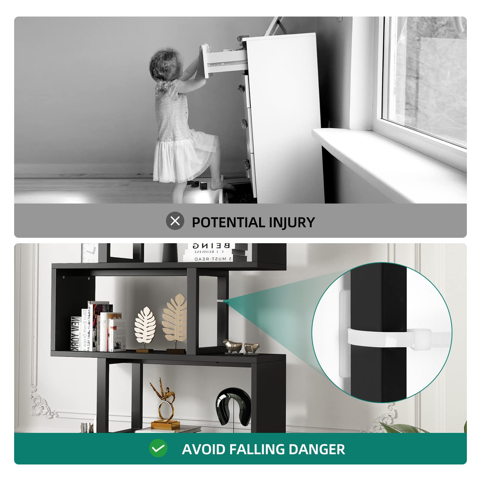 - ANTI-FALL SAFETY KIT & DIMENSIONS- Equipped with anti-fall kit for family safety and product stability. Please remember to install the anti-fall tool on the wall for better stability and less unexpected injuries. Overall Dimensions: 31.5”x 11.8”x 57.0”(L x W x H), providing enough space for displaying.
