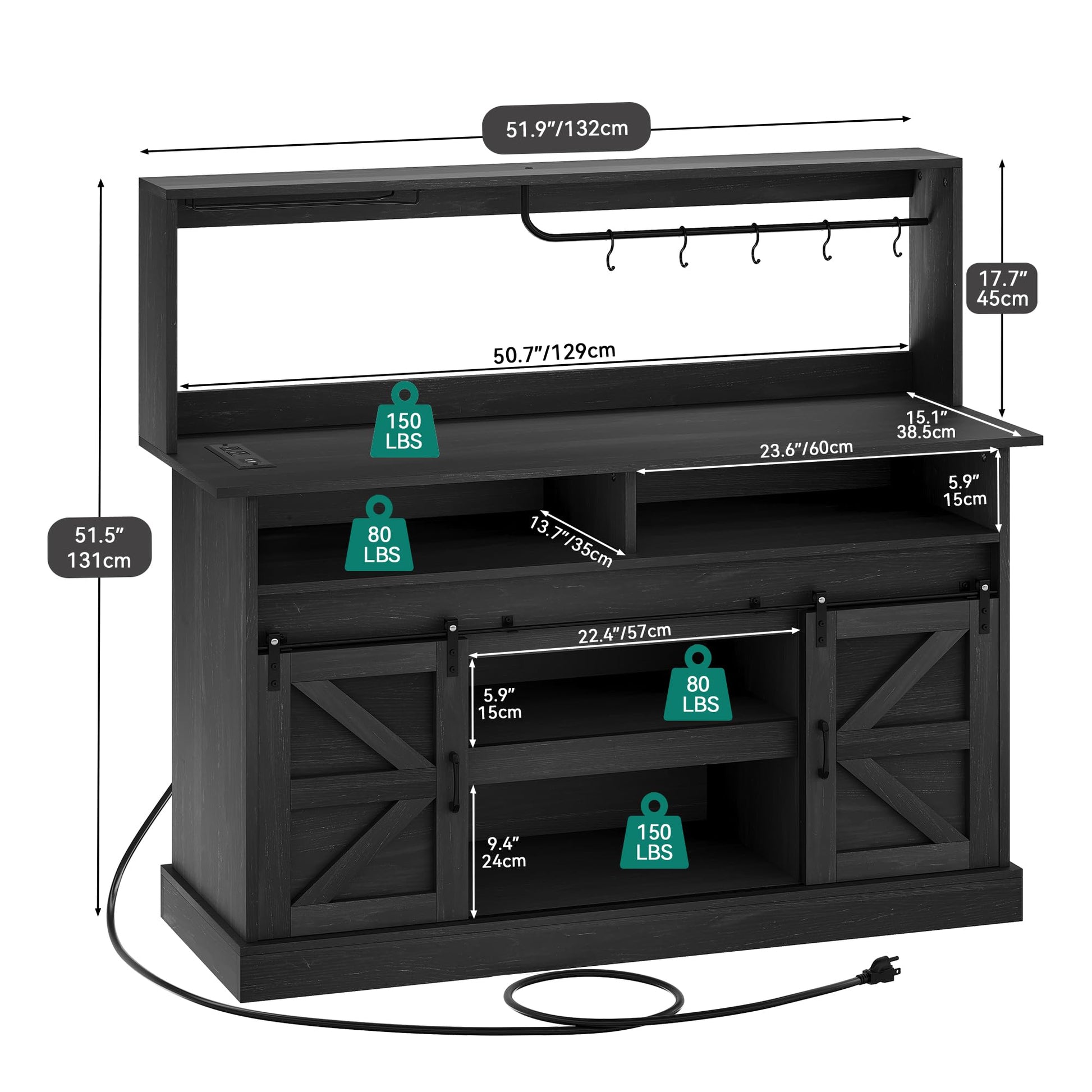 - Farmhouse Sliding Barn Door: The bar cabinet is designed with sliding barn doors with smooth rails and vintage handles; And the shelves in the cabinet can be adjusted height for various items.