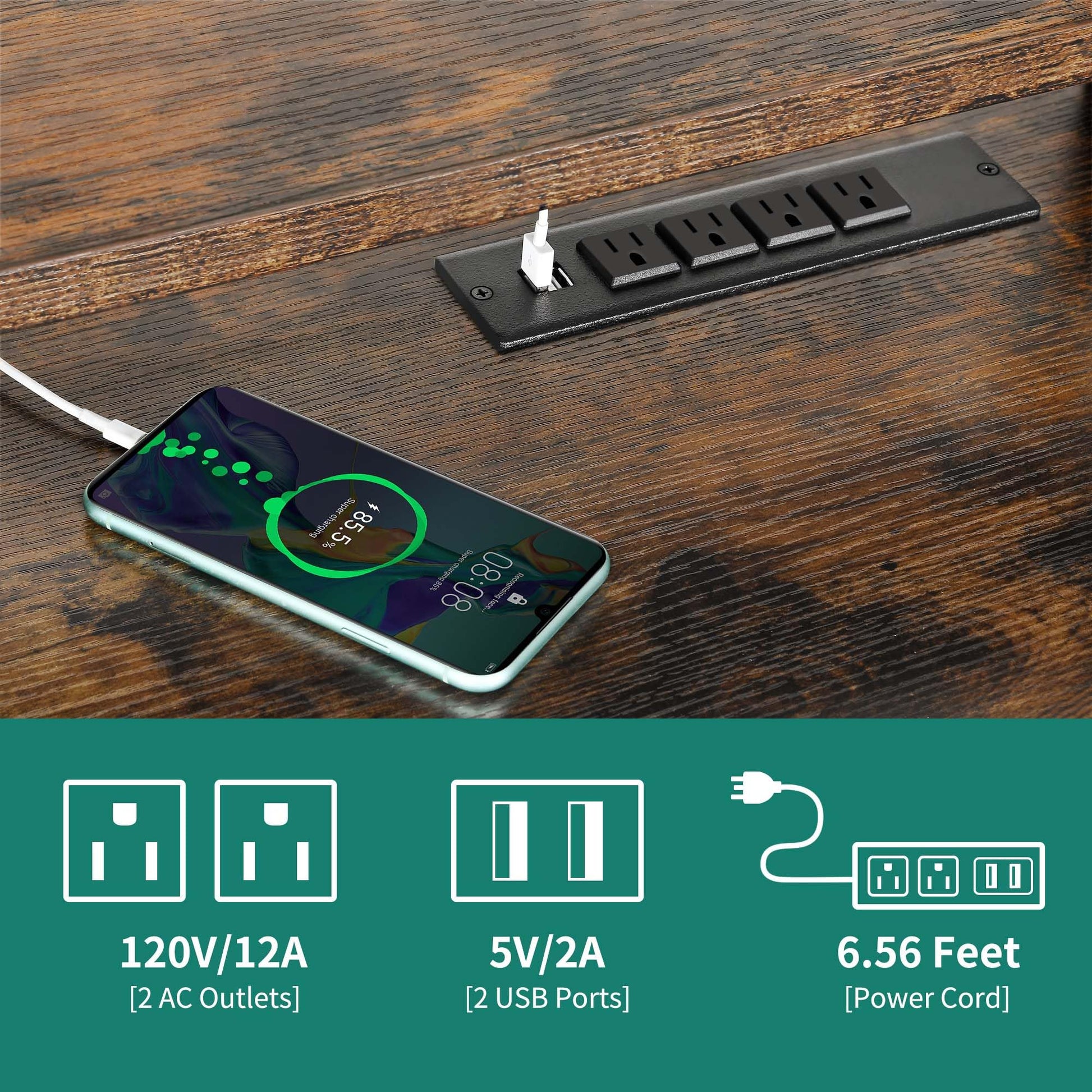 - This computer desk features 2 USB ports, 4 power outlets & a 6.56ft power cord to charge your laptop, tablet, printer and other devices, making your life easier